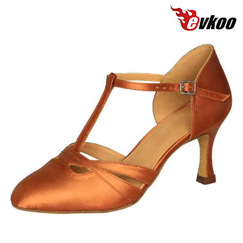 Обувь для латинских танцев Evkoodance, размеры США 4-12, сатиновые туфли на заказ, обувь для танцев на каблуке 7 см, женская обувь для танцев, Evkoo-337