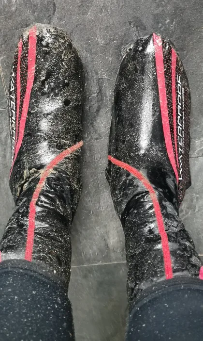 Я был приятно удивлен. XXL с обувью Shimano 46 подходит очень хорошо. Ткань выглядит довольно хорошо и водонепроницаема, а кончик очень хорошо укреплен. Чтобы увидеть, как долго они продержатся!