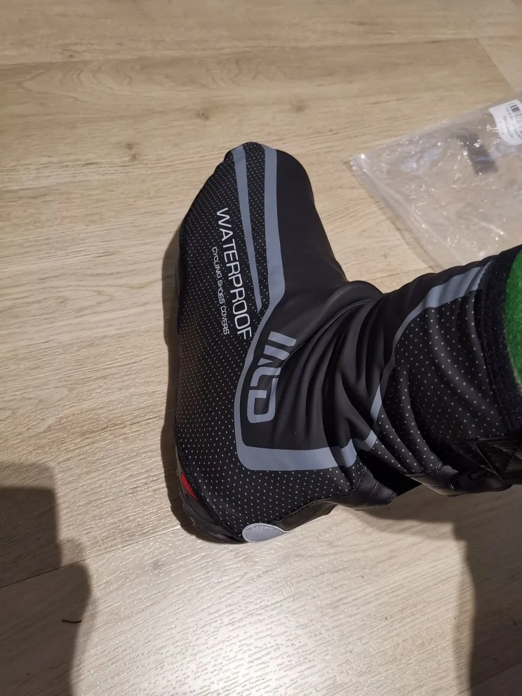 Продукт был доставлен неожиданно быстро. Почти все, как описано. Выбранный Размер M подходит для кроссовок размером 41 (25,5 см). Езда на велосипеде во влажных условиях с чехлами, безусловно, лучше, чем без. Они полностью останавливают грязь, но вода все еще проходит. Мои носки влажные, но, чтобы быть честными, они были бы абсолютно влажными без