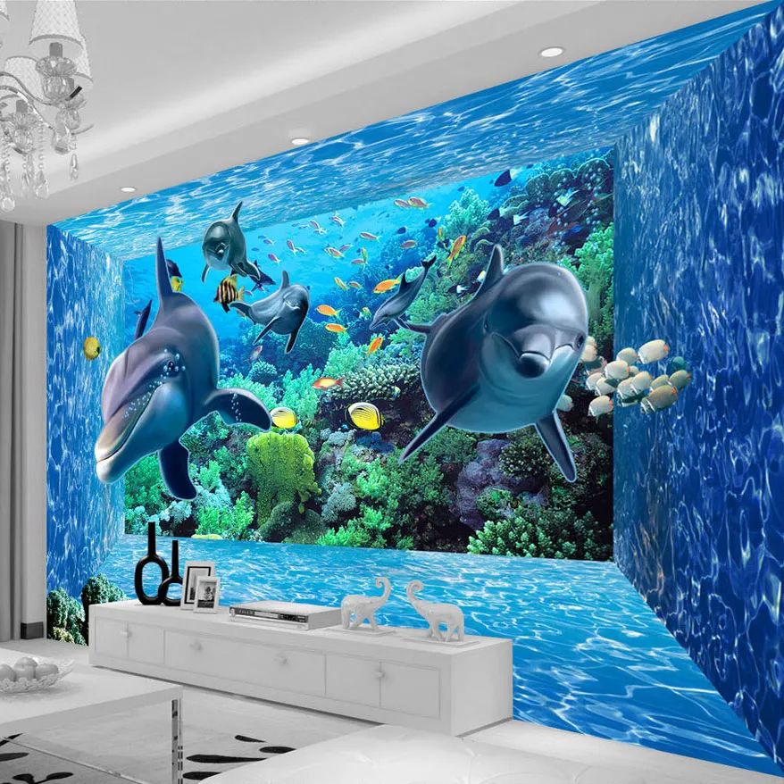 Фотообои на заказ для стен, 3D подводный мир, дельфин, детская, гос...