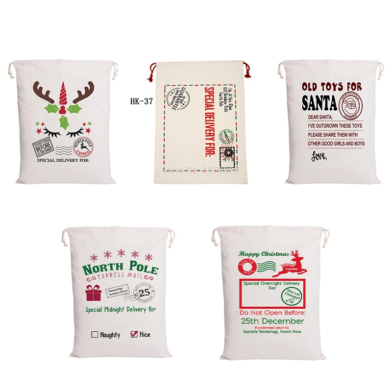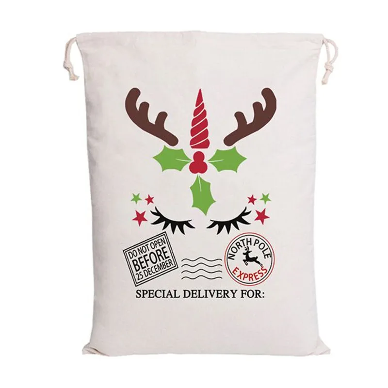 Оптовая продажа 10 шт.лот Рождественский Подарочный пакет на шнурке 44 стиля большие мешки Санты парусиновые рождественские чулки и подарочные держатели 2020