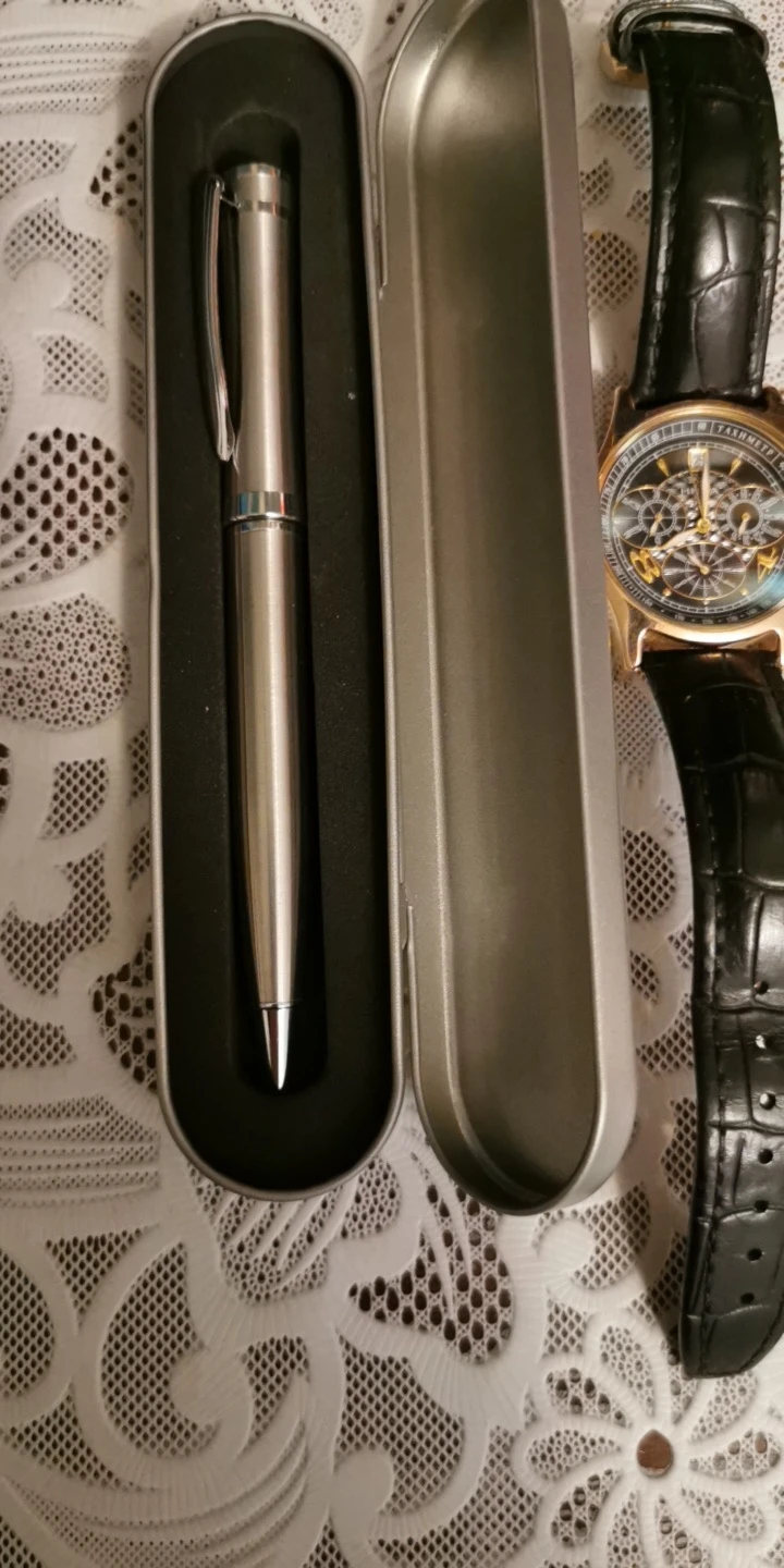 Заказал 11.11 получил 11.12. заказал без футляра, потому что это вторая ручка заказанная у продавца, первая ещё держится, но уже устает, решил перестраховаться и заказать ещё одну. с ней идёт паста,кончик запаян от высыхания. Ручка очень увесистая,но это маме очень нравится,на работе люди расписывающиеся постоянно спрашивают , где заказывали. В общем это прекрасный подарок на какое-нибудь событие.