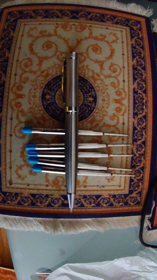 ручка огонь брал с пятью стержнями, пишет мягко даже на засаленой бумаге, для моей работы ништяк, доставка две с половиной недели