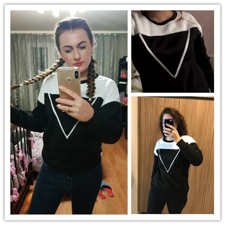 Женская толстовка составного кроя, черно-белая толстовка с V-образным вырезом, спортивный костюм, зима 2021, M-XXL