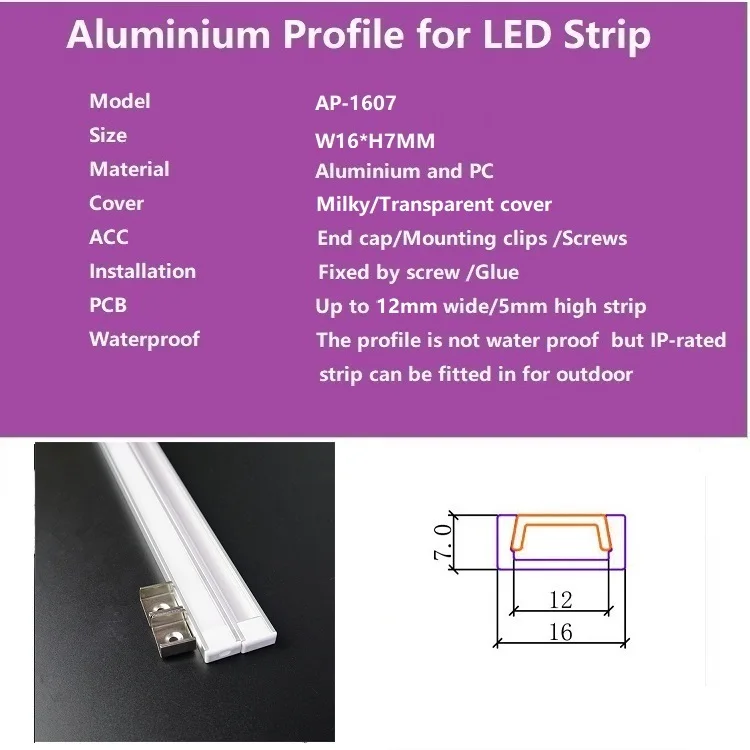 1. Светодиодный профиль алюминия Материал корпуса: 1 м/компл. x 10 шт./набор