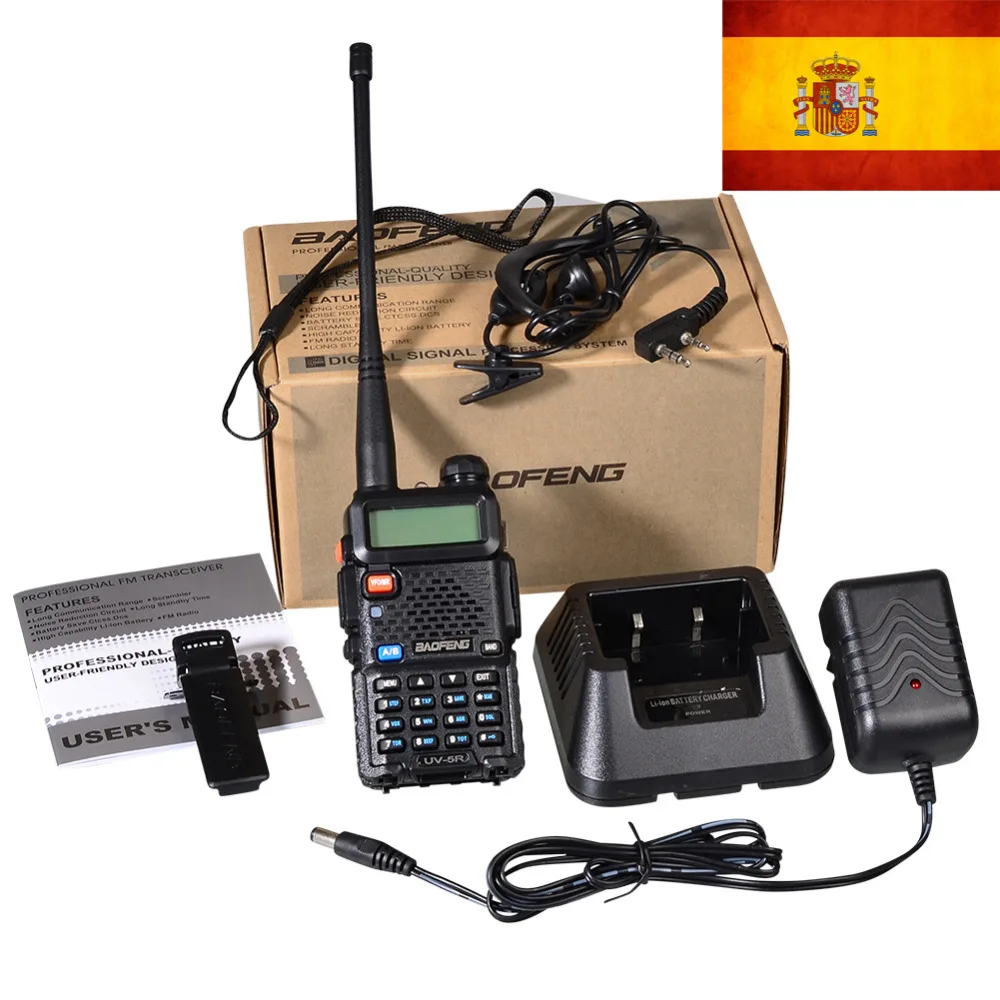 10 шт., новинка, черный двусторонний радиоприемник Baofeng UV-5R WalkieTalkie 136-174 и 400-520 МГц, в наличии в Испании