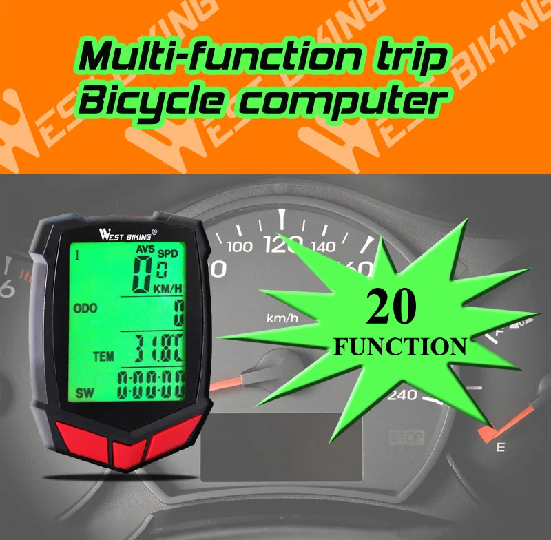 WEST BIKING велосипедный компьютер, 20 функций, спидометр, одометр, проводнойбеспроводной + Секундомер