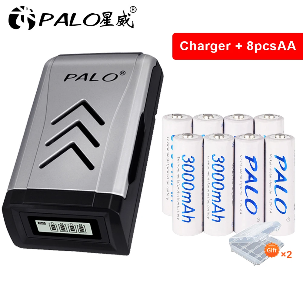 Palo 1,2 в AA перезаряжаемая батарея 3000 мАч Ni-MH предварительно заряженные перезаряжаемые батареи + зарядное устройство для батарей 1,2 в AA AAA