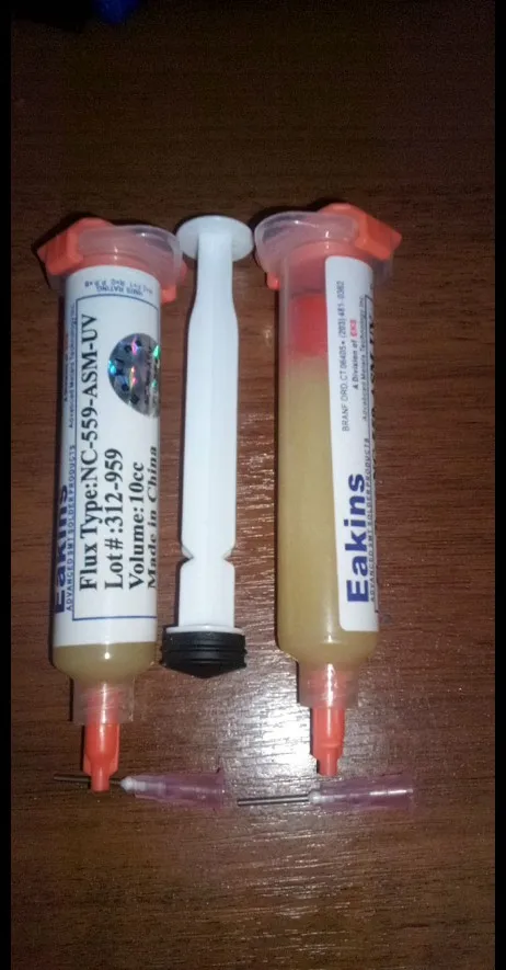 С виду норм флюс. После проверки в работе отпишусь. В комплекте 2 иглы и поршень. Правда поршень выпадает, надо со шприца снять и будет отлично. Ещё момент: флюс в одном шприце чуть темнее чем во втором, надеюсь это никак не скажется на качестве флюса.