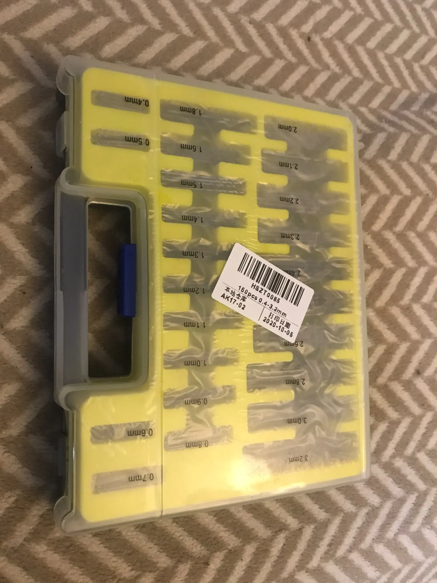 The drill bit set received is the one announced and the shipment was fast, but for this price do not expect high quality tools! On the photo, you can see that without sharpening, they are completely unusable. I took a drill bit from the dimensions between 0.4 to 1.2mm but looking at the photo I found less difference than expected. After the measurement, here is how the set looks like, twice the quantity of one dimension, none of the next. Sure it's not the fault of the seller but he should better chose the supplier.
