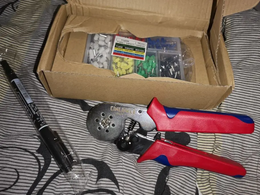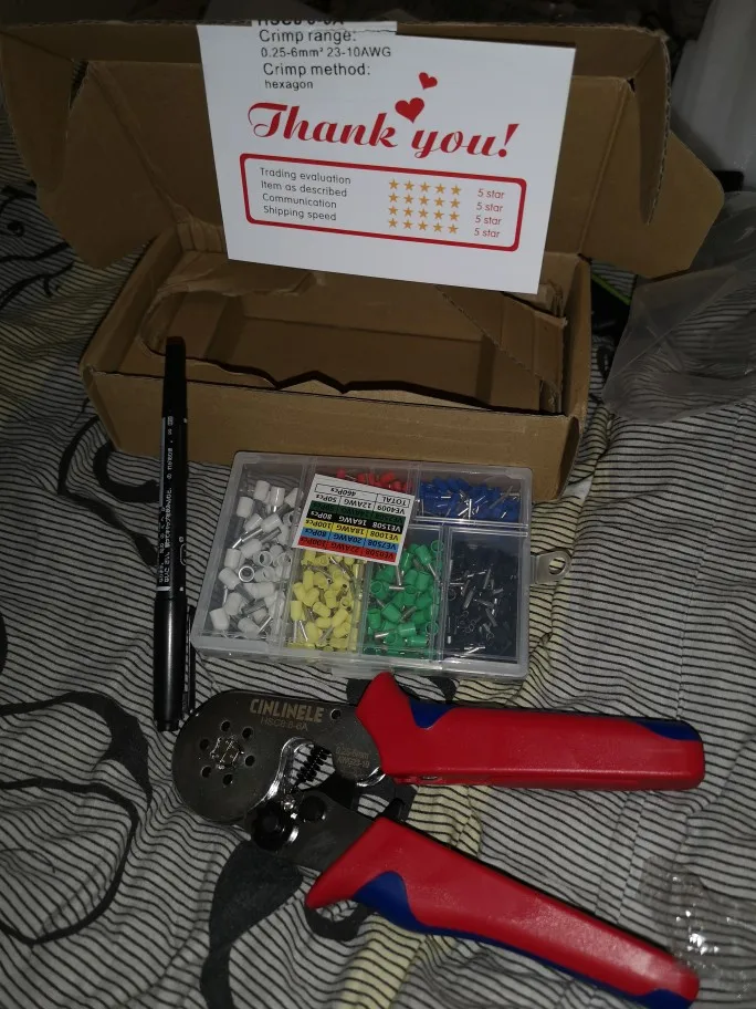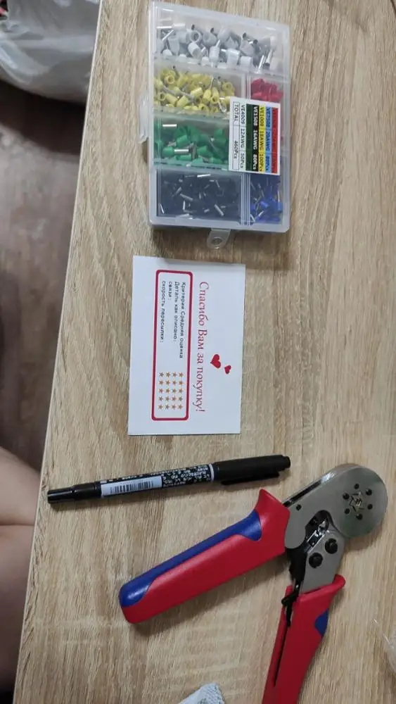 Обжимка огонь!!! Доставка быстрая. Курьер до дома. Брал из РФ. В подарок маркер, с тоненьким пером и толстым. Обжимается легко и быстро. Ни чего не заедает. Для качественной и быстрой работы самое то. В наших магазинах за такой инструмент просят более 3к рублей.