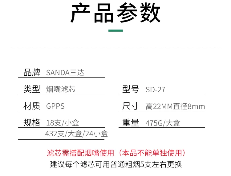 Новые фильтры Sanda SD-27 432партия, сигаретные фильтры, держатель сигарет, дымовой сердечник, аксессуары для курения