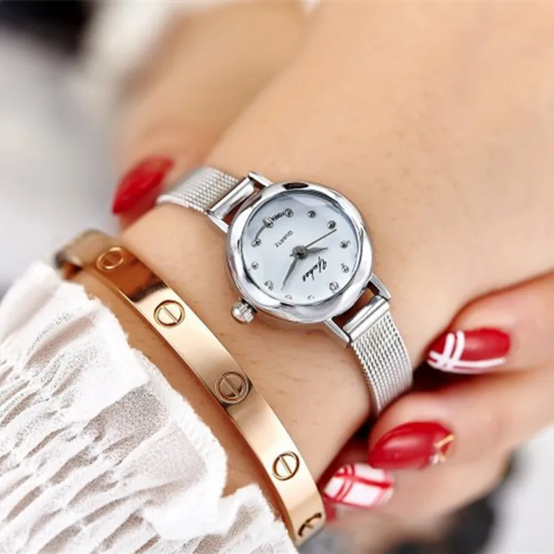 Женские кварцевые часы с браслетом из нержавеющей стали
