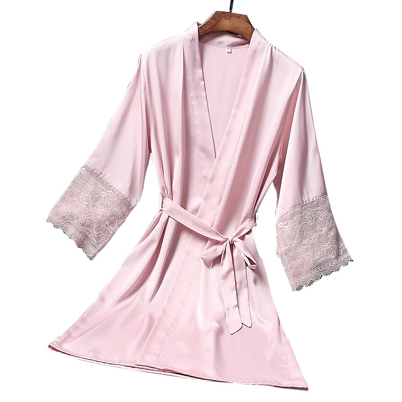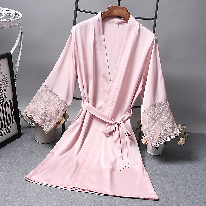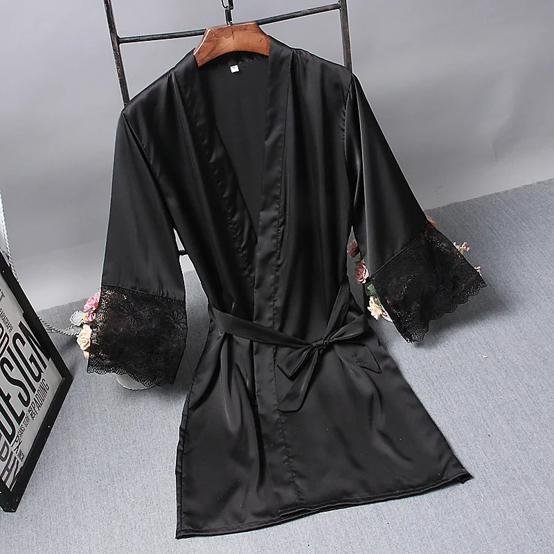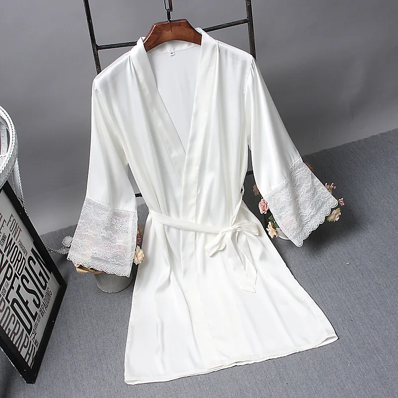 Халат женский атласный кружевной, Элегантная пижама для подружки невесты, пикантный шелковый халат-кимоно, одежда для сна