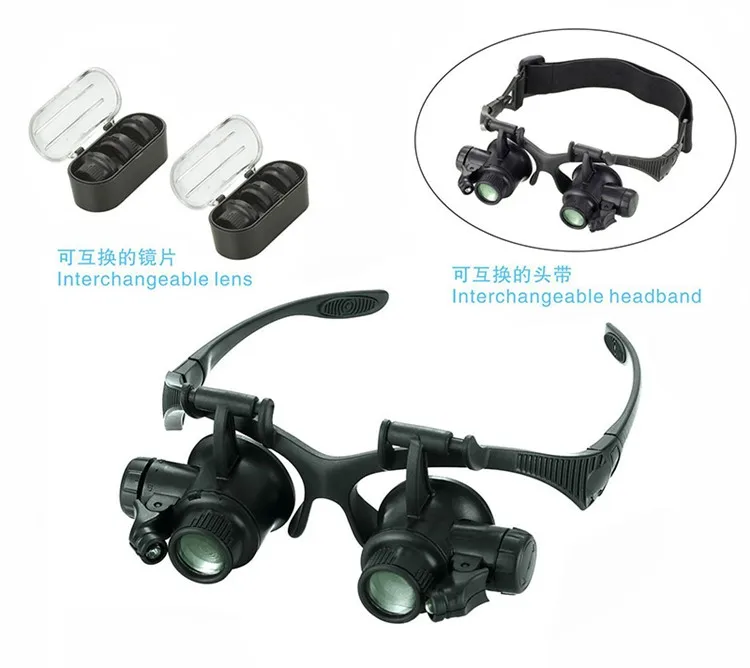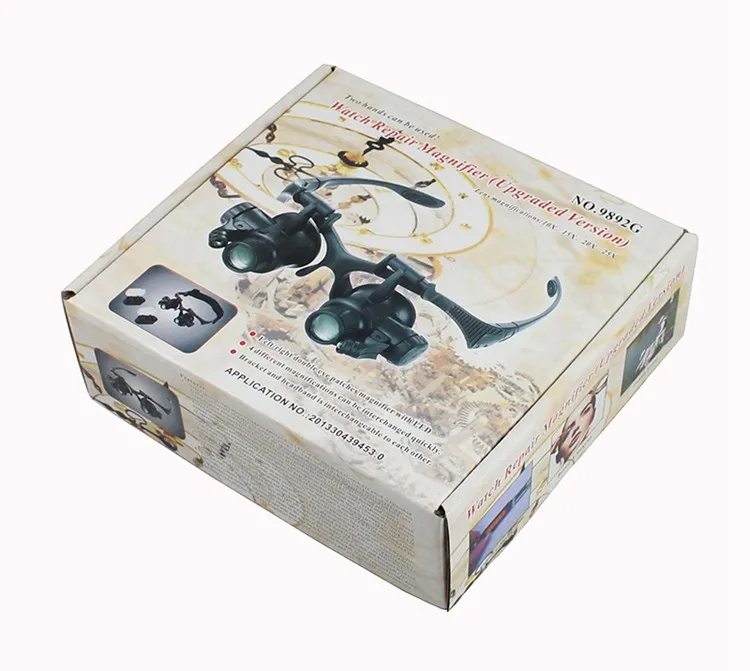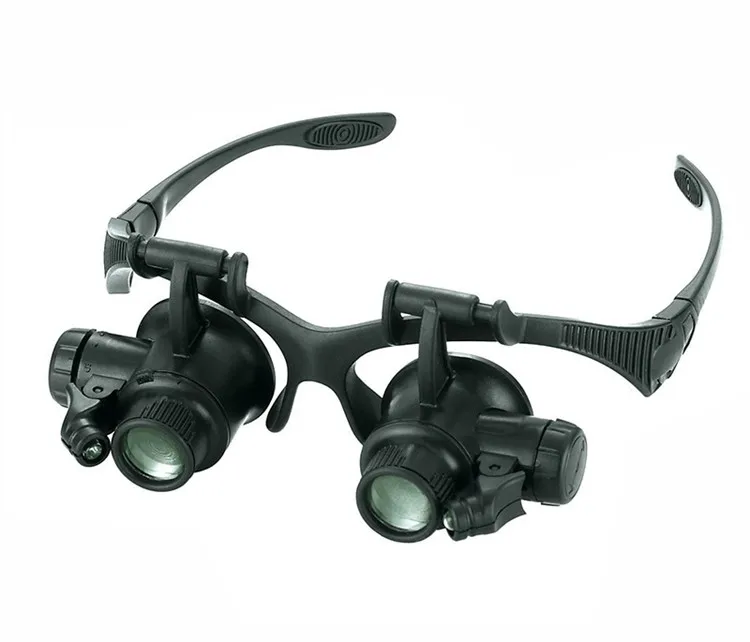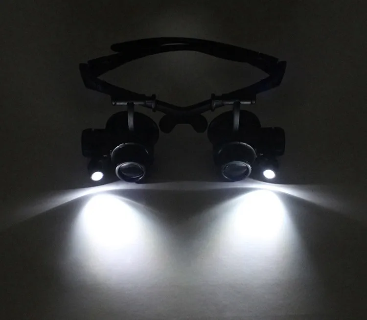 Увеличительное стекло 10X 15X 20X 25X с регулировкой линз, с 2 светодиодный дами лупы для глаз, инструменты для ремонта ювелирных часов, увеличительные очки с коробкой