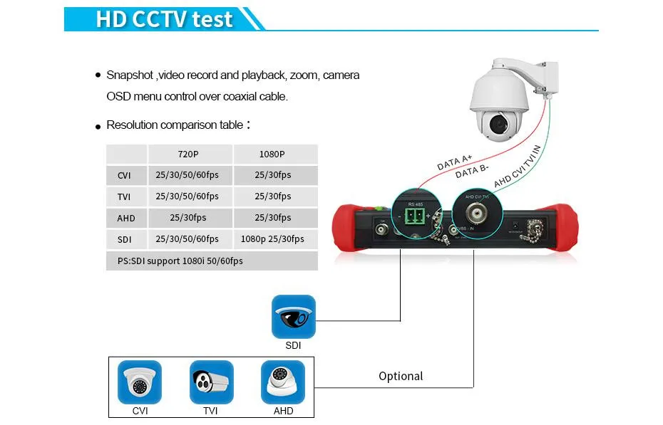 Тестер видеонаблюдения 6 в 1, 7 дюймов, HD, монитор, IP AHD, CVI, TVI, SDI, тестер аналоговых камер 8 Мп, 5 МП, 1080P, Wi-Fi, PTZ, POE, выход 12 В