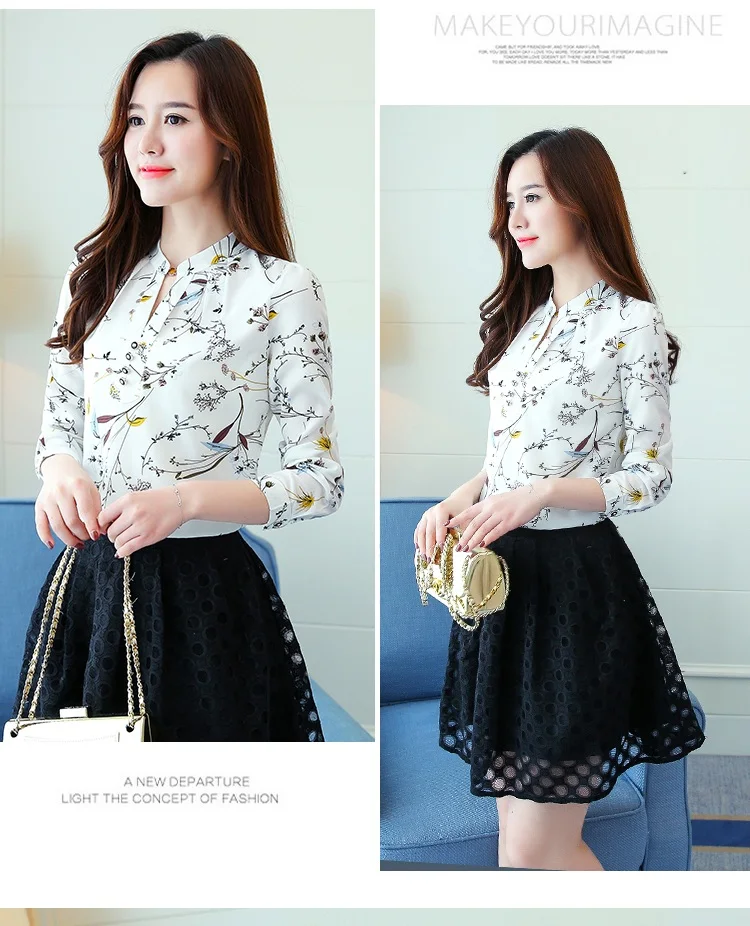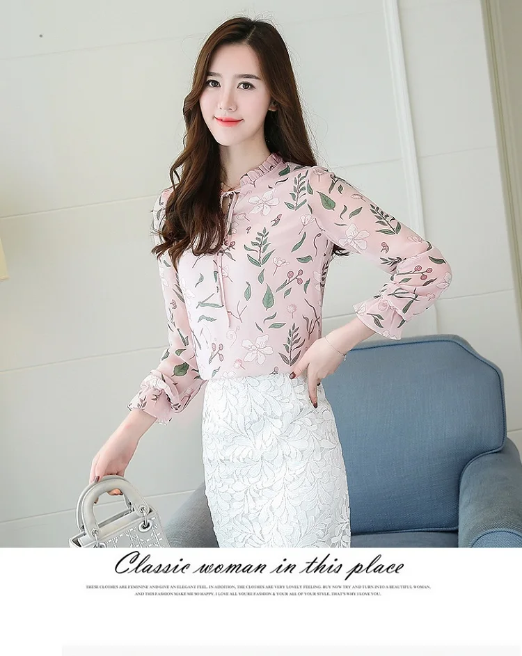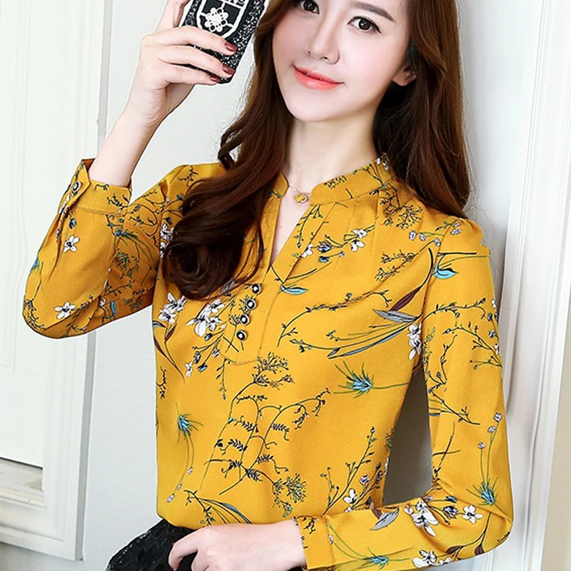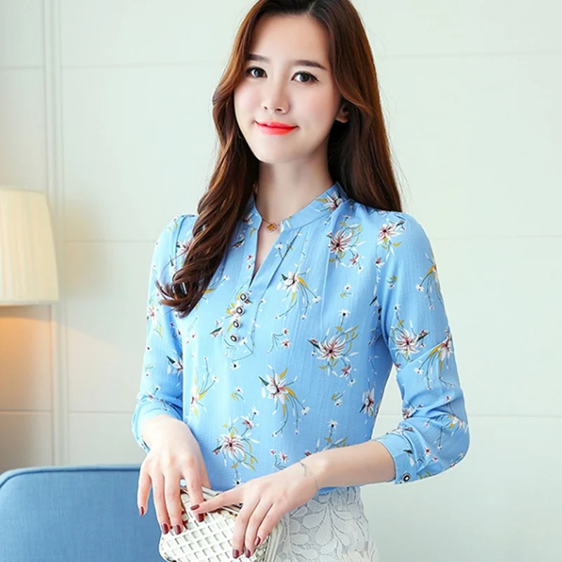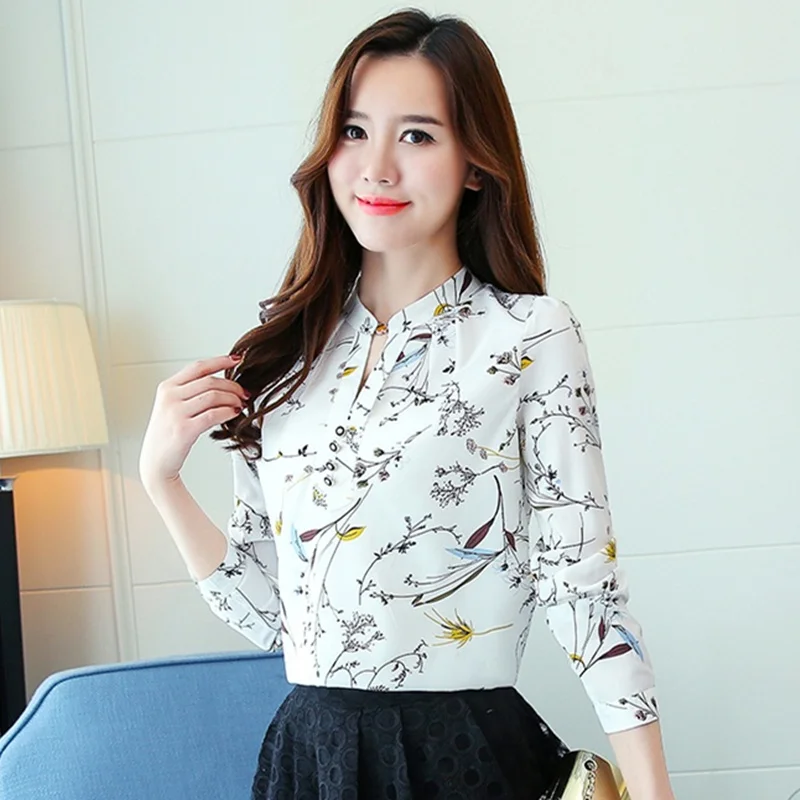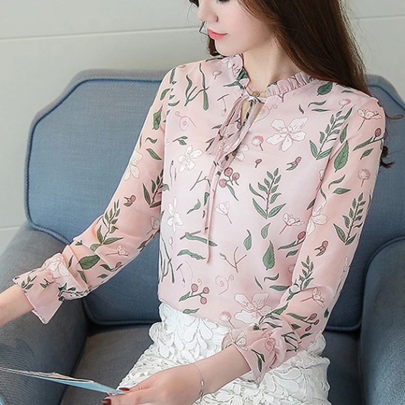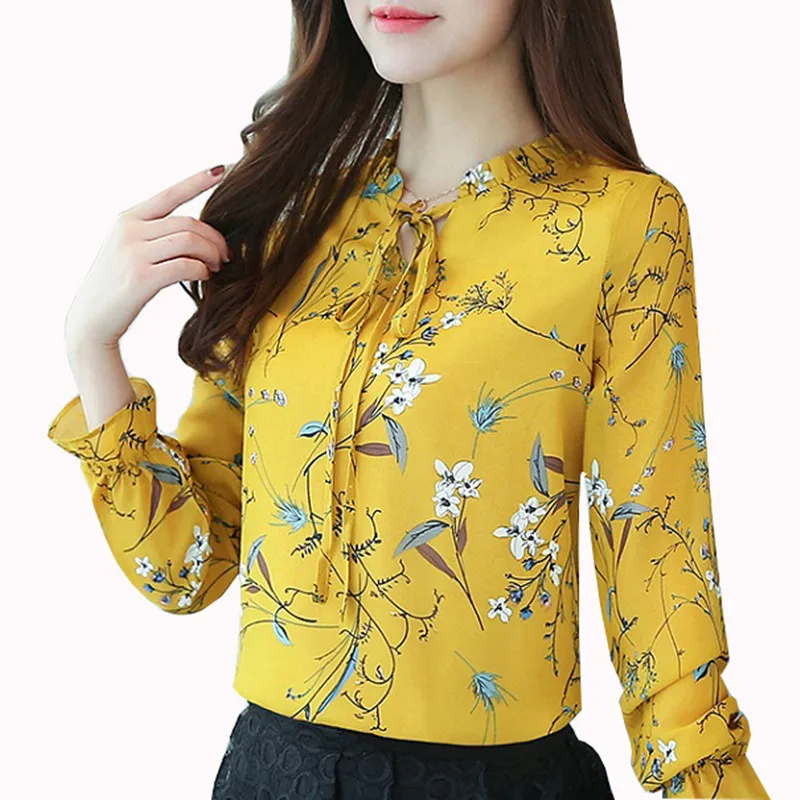 Женские весенне-осенние шифоновые блузки топы, Блузки из шифона рубашки женские блузки с цветочным принтом женские блузки с длинным рукавом размера плюс блузки 90