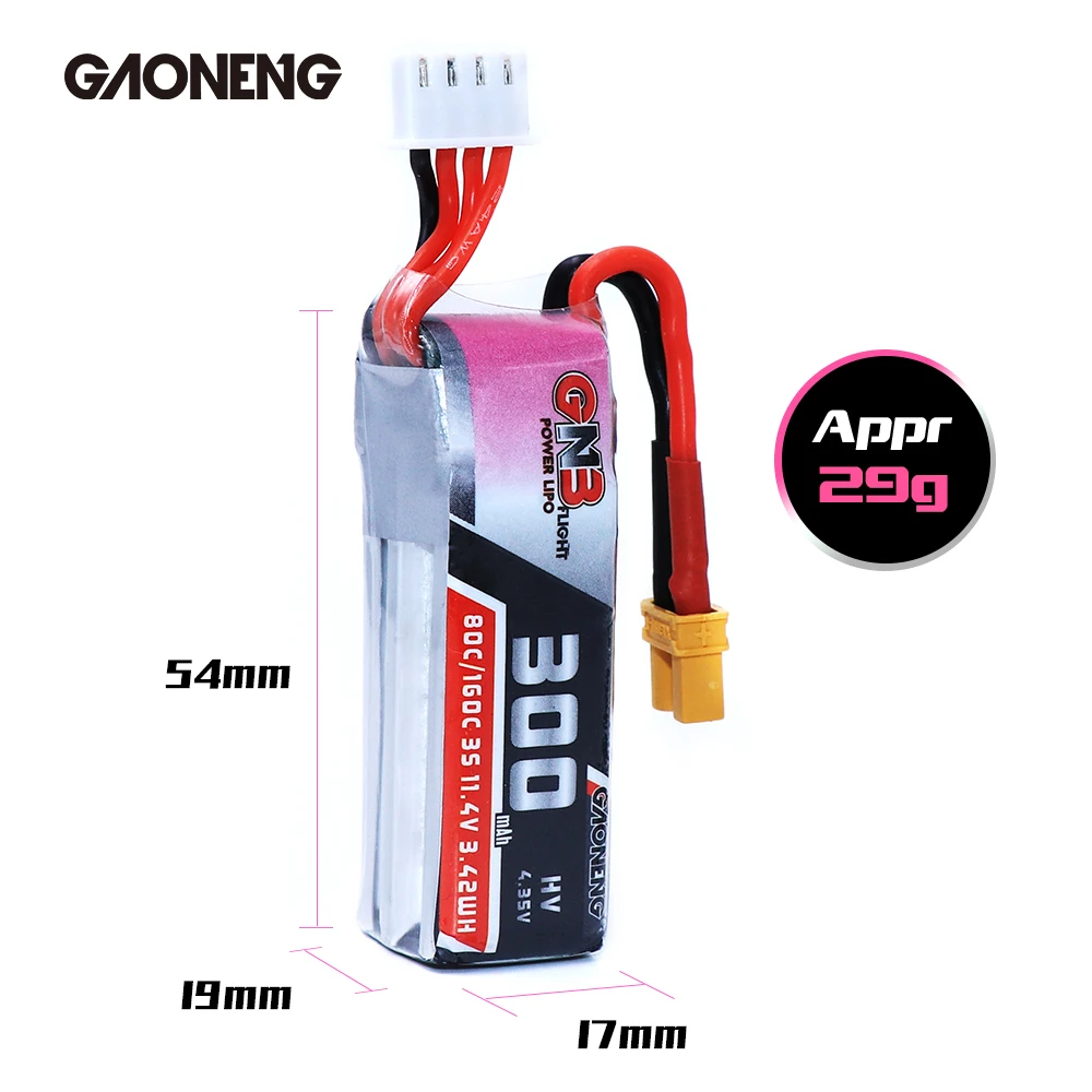 2/5 шт высокая скорость Gaoneng GNB 11,4 V 300mAh 3S 80C Lipo Батарея XT30 разъем для URUAV UR85/UR85HD Mobula7 HD Sailfly-X дрона с дистанционным управлением Запчасти Радиоуправляемый квадрокоптер