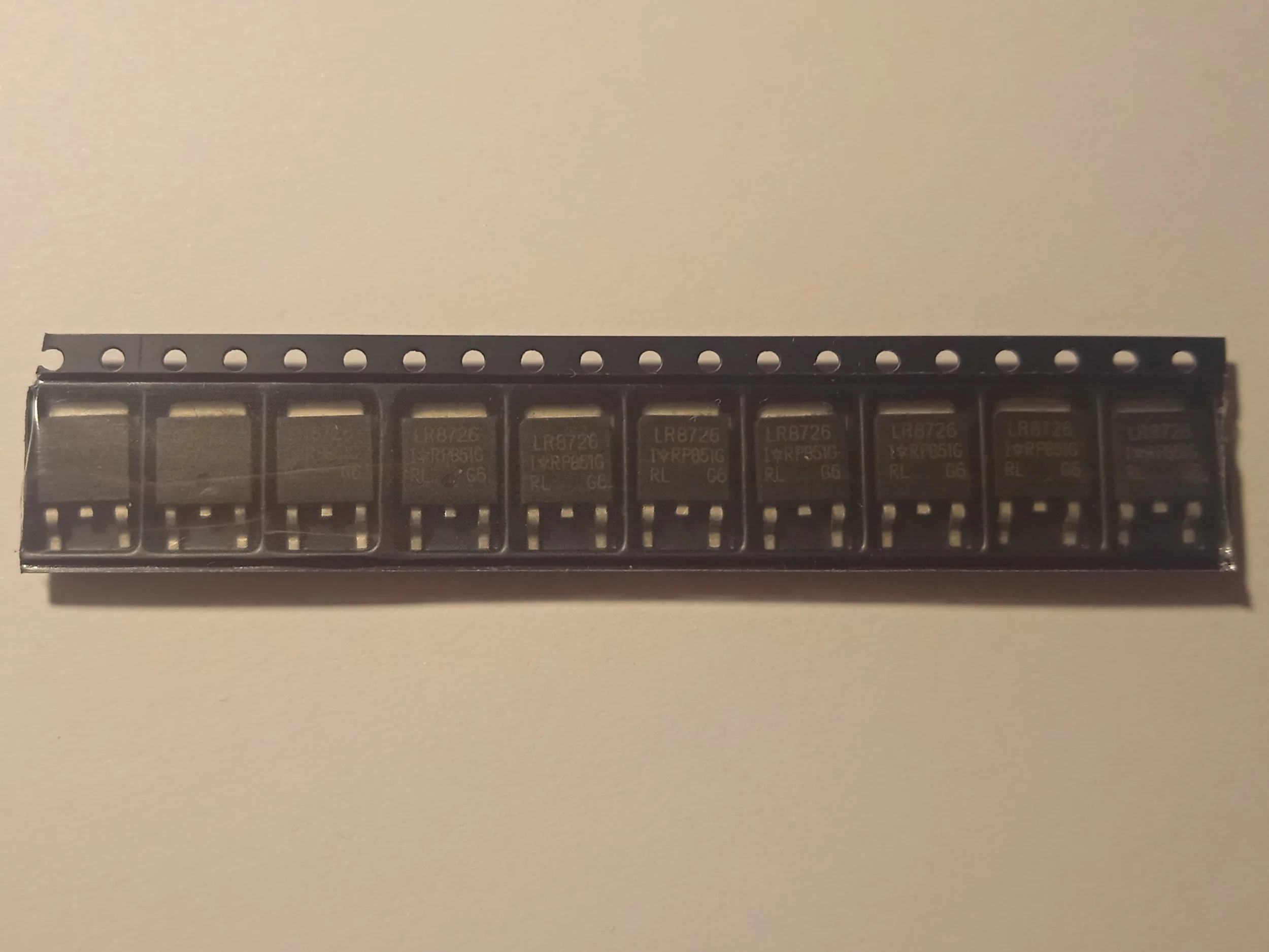 Посылка шла чуть более месяца. Упакованы в стандартный желтый бумажно-пупырчатый пакет. Транзисторы похожи на настоящие, но у оригинала на фланце стока, если не ошибаюсь, нет овального выреза. Проверил сопротивление канала под нагрузкой. Сопротивление включенного канала R=4,1mOhm (Id=3,92A Ugs=10,7V, что соответствует фирменному описанию. Профессиональный LCR показал емкость Cgs=3,3nF. По описанию номинальное значение должно быть 2150 pF. Показания простого тестера на фото - емкость 3,5nF. Пороговое напряжение VGS(th)=1,6V соответствует допустимому диапазону по описанию. Посмотрим как они в деле будут.