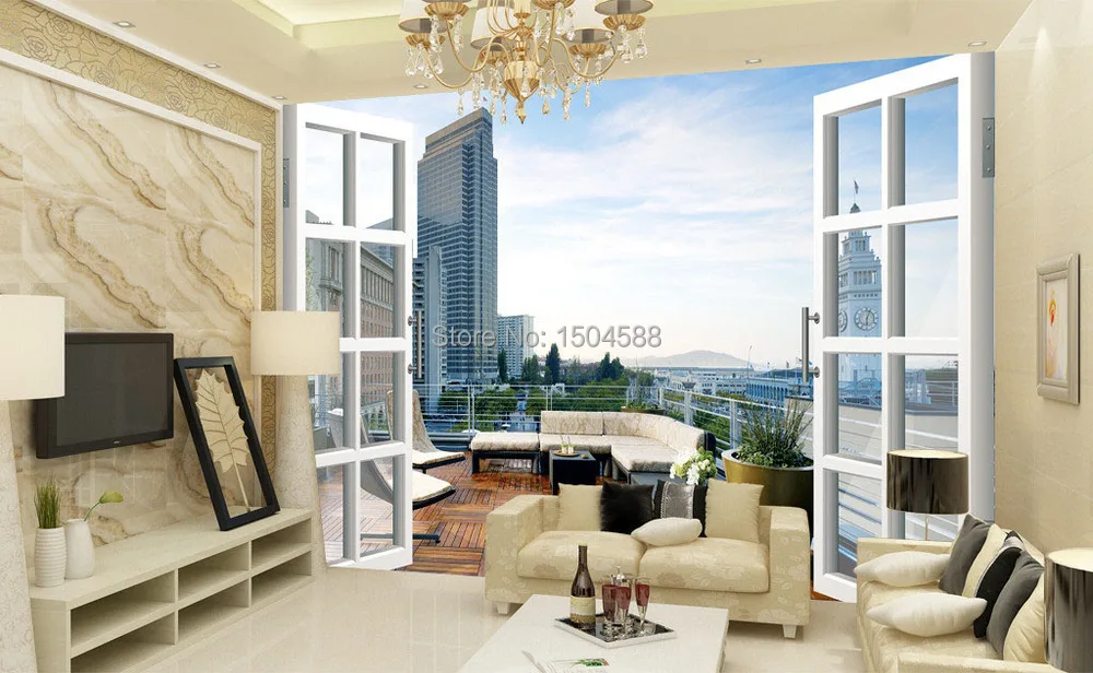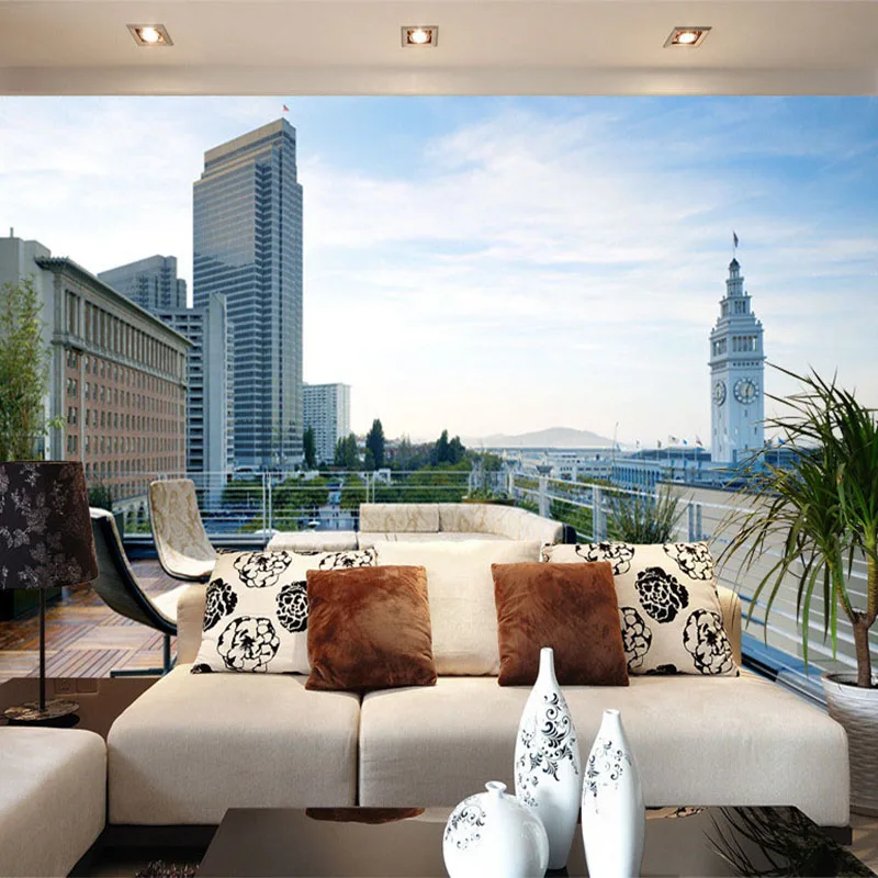 Настенные 3D-обои на заказ с изображением городского пейзажа, балкона, настенная живопись для гостиной, ТВ, дивана, фоновые обои