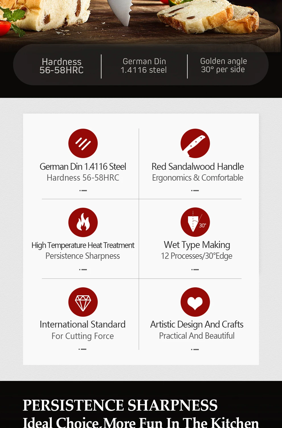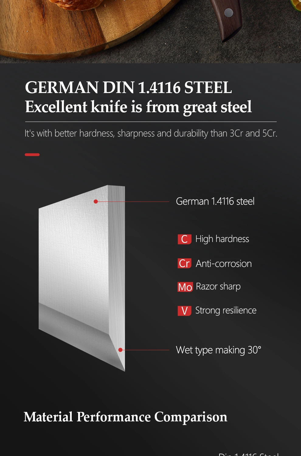 Материал лезвия:1,4116 молибденовая ванадиевая сталь Германии ThyssenKrupp Ggroup