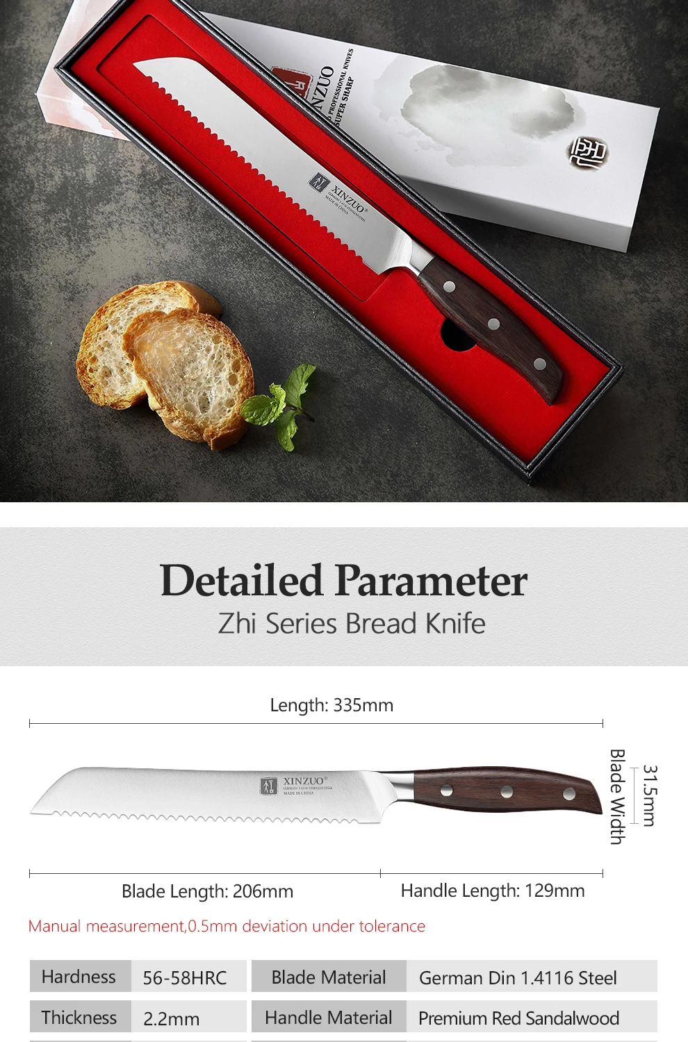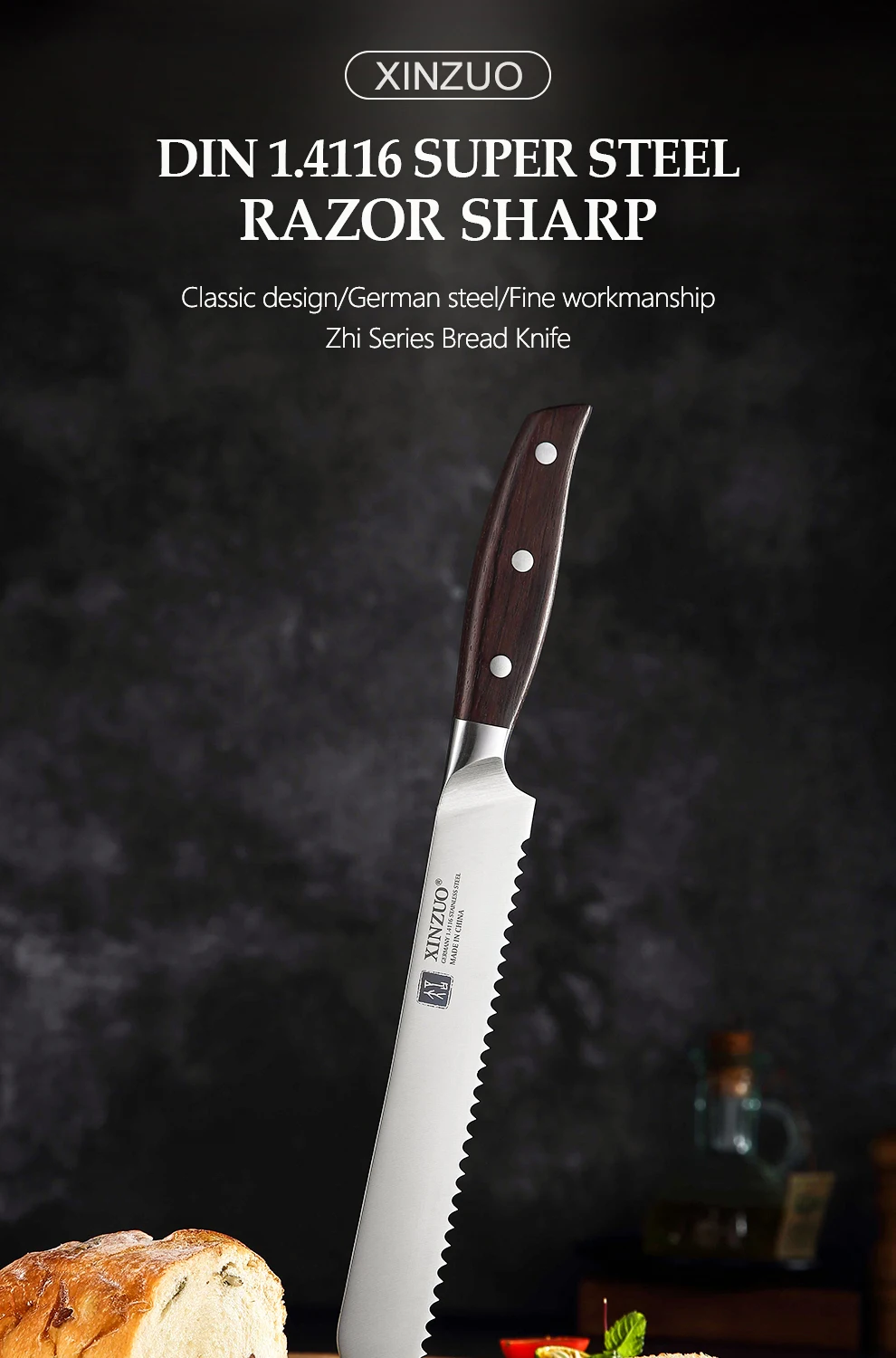 Нож для хлеба из нержавеющей стали серии XINZUO Zhi