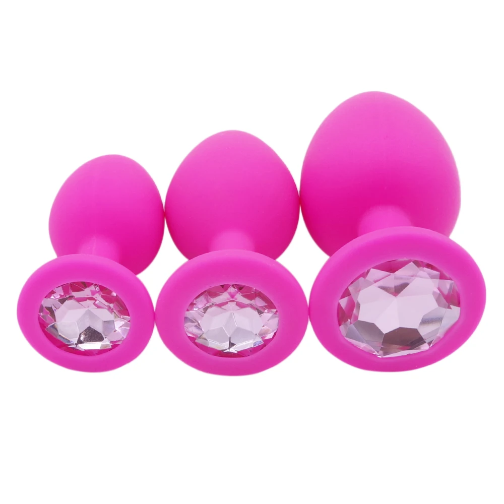 Анальная пробка DOMI 3 шт. Разноцветные Хрустальные Драгоценности маленький, средний, большой, Женская Анальная игрушка, силиконовая Анальная пробка, секс-игрушки