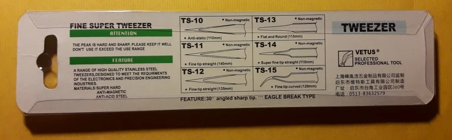 Швейцарские инструменты пинцеты Vetus, прецизионные пинцеты из нержавеющей стали для ремонта, отличное качество, TS-11