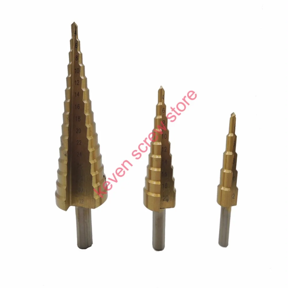 3 шт.лот, на Возраст 4-122032 мм Профессиональный HSS сталь большой шаг конус с титановым покрытием металлические перовые сверла долото из высокопрочной стали дыропробивной пресс