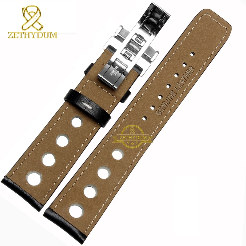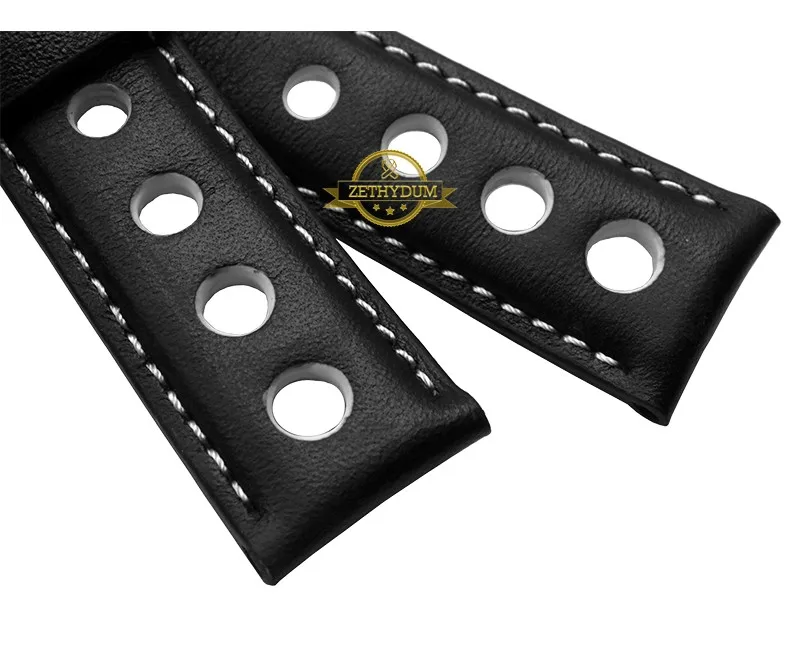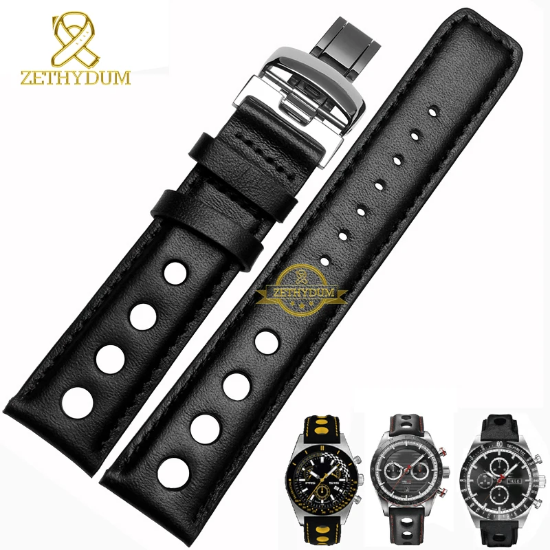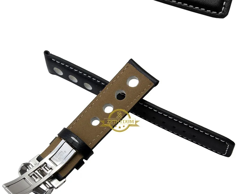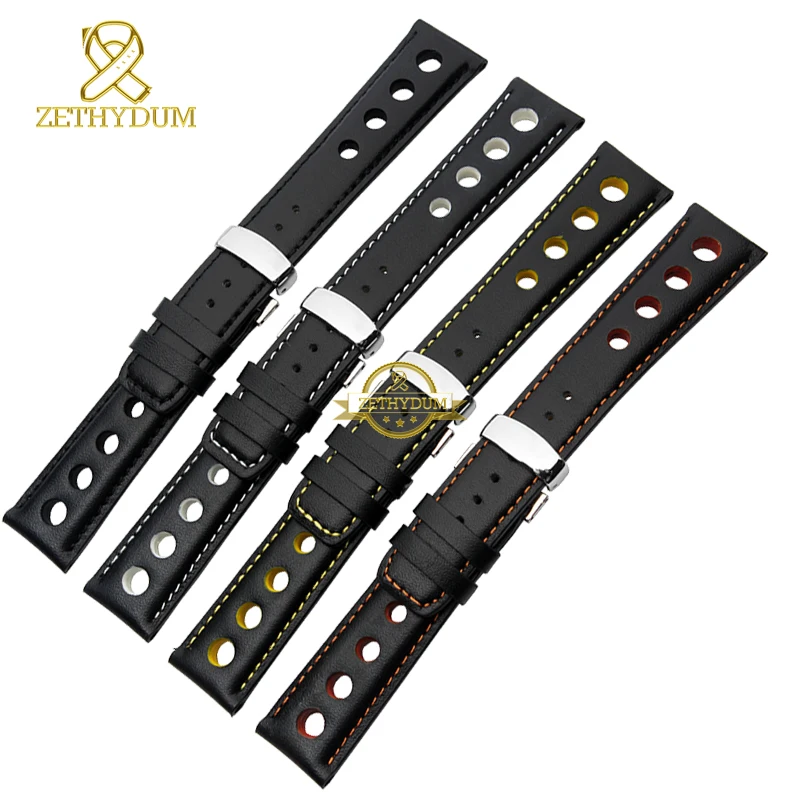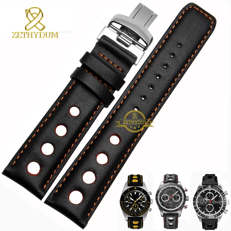 Ремешок из натуральной кожи для наручных часов, спортивный браслет для мужских наручных часов, чёрный оранжевый прошитый, 20 мм