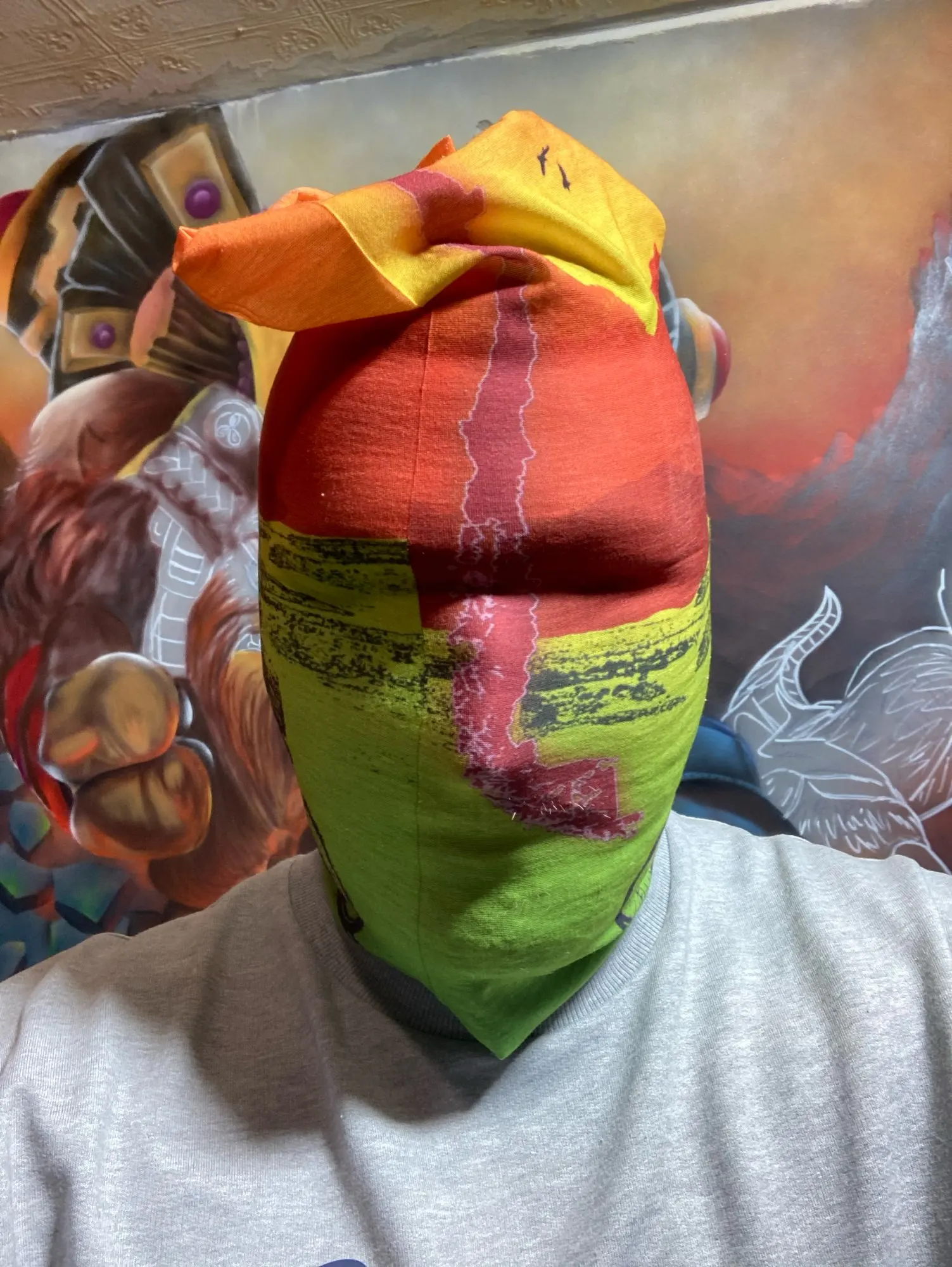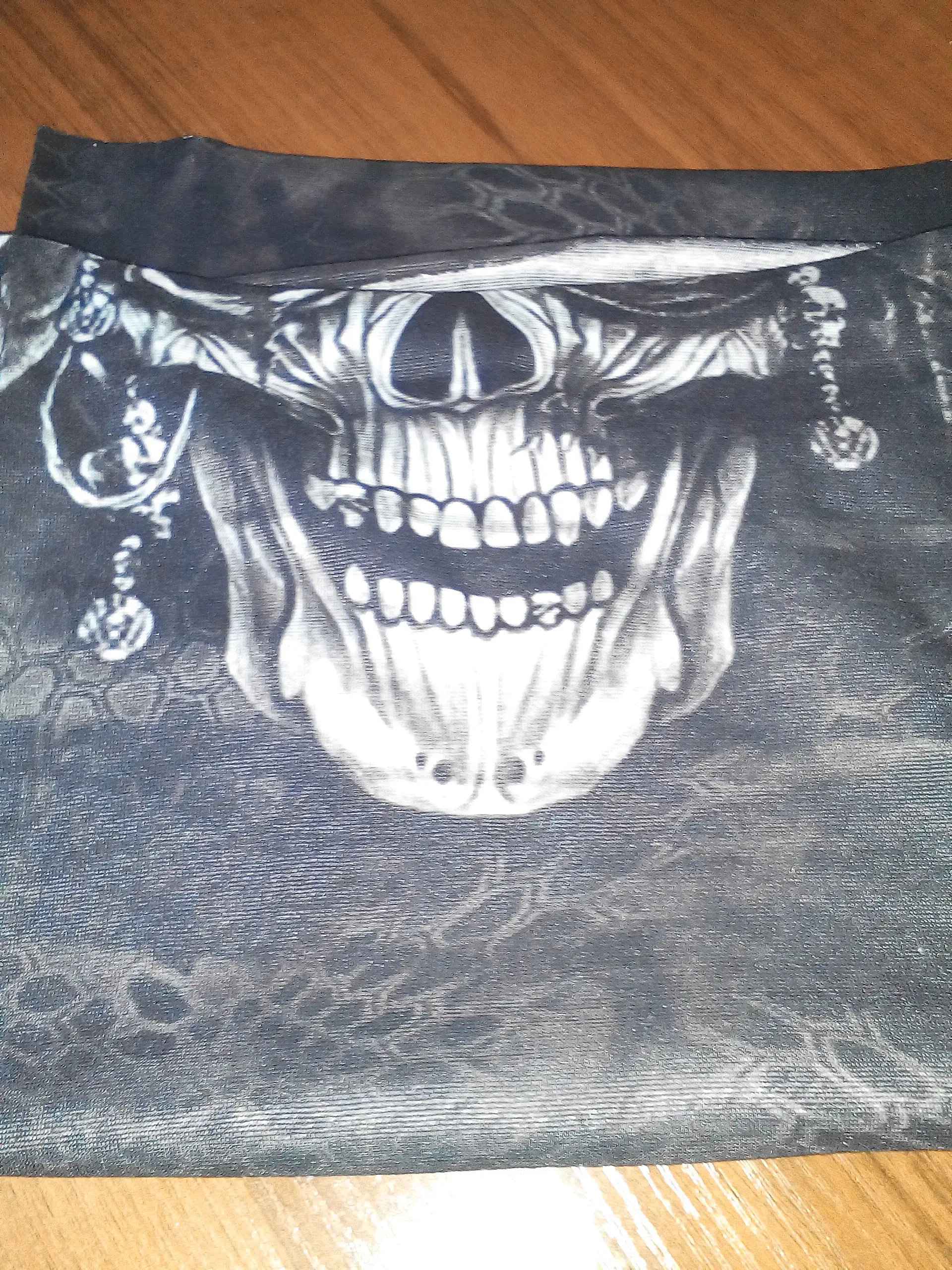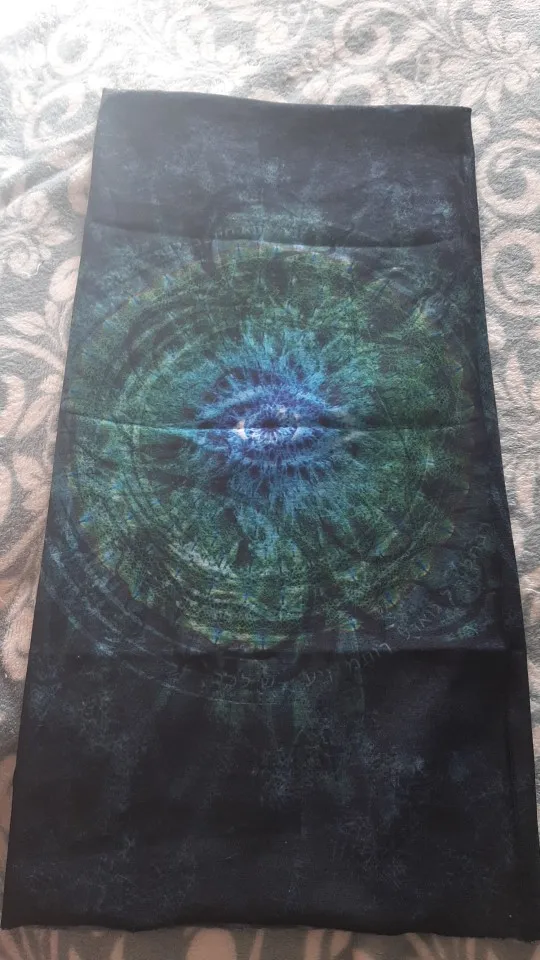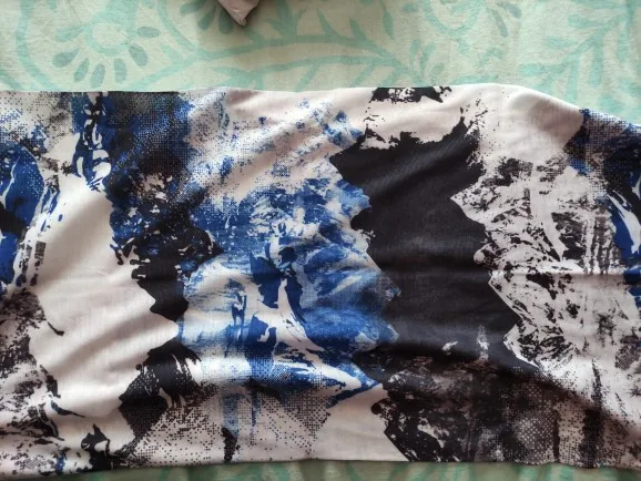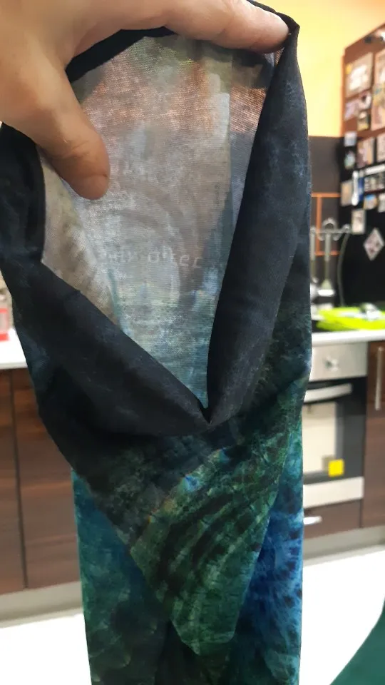 Принт - просто суперский! Красиво. маска очень эластичная. Я скептически отнеслась к фото продавца, где китаянка примеряет как топ, но даже на мой немаленький размер - спокойно, только том покороче). Надеюсь не растянется со временем, планирую носить в режиме маски.