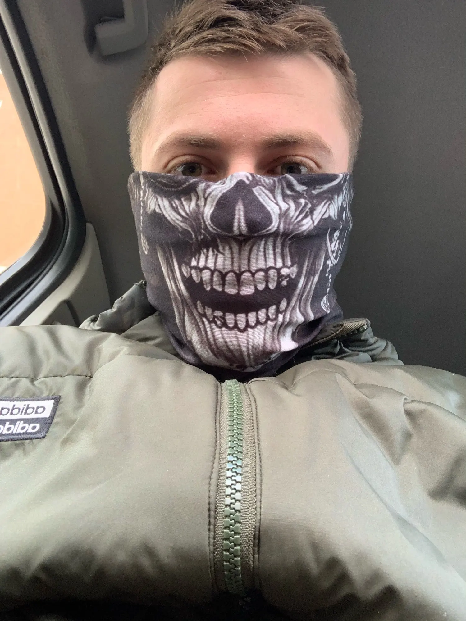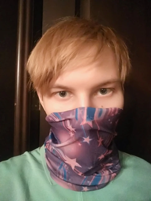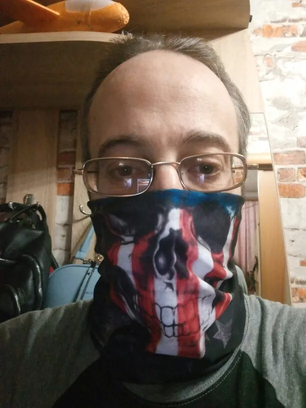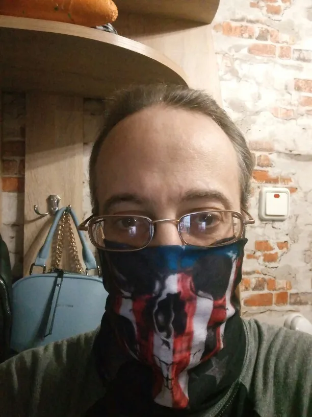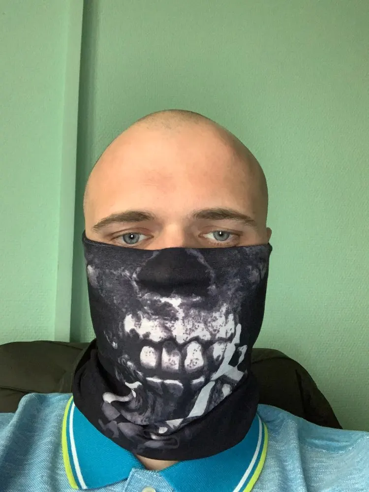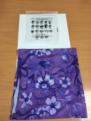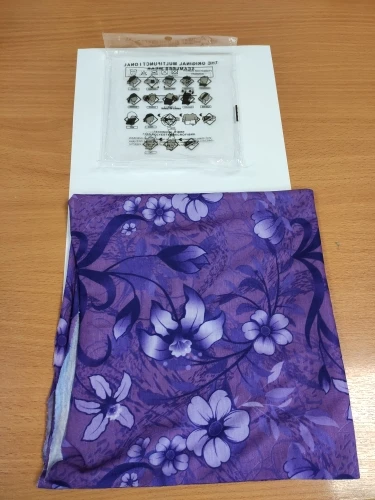 Бандана пришла за 1,5 м-ца до Костромы. Материал тянется, накрахмаленный, сразу в стирку, чтоб стала мягче. Запаха нет. Буду теперь в общественных местах одевать, а то маски эти дебильные неудобные надоели....