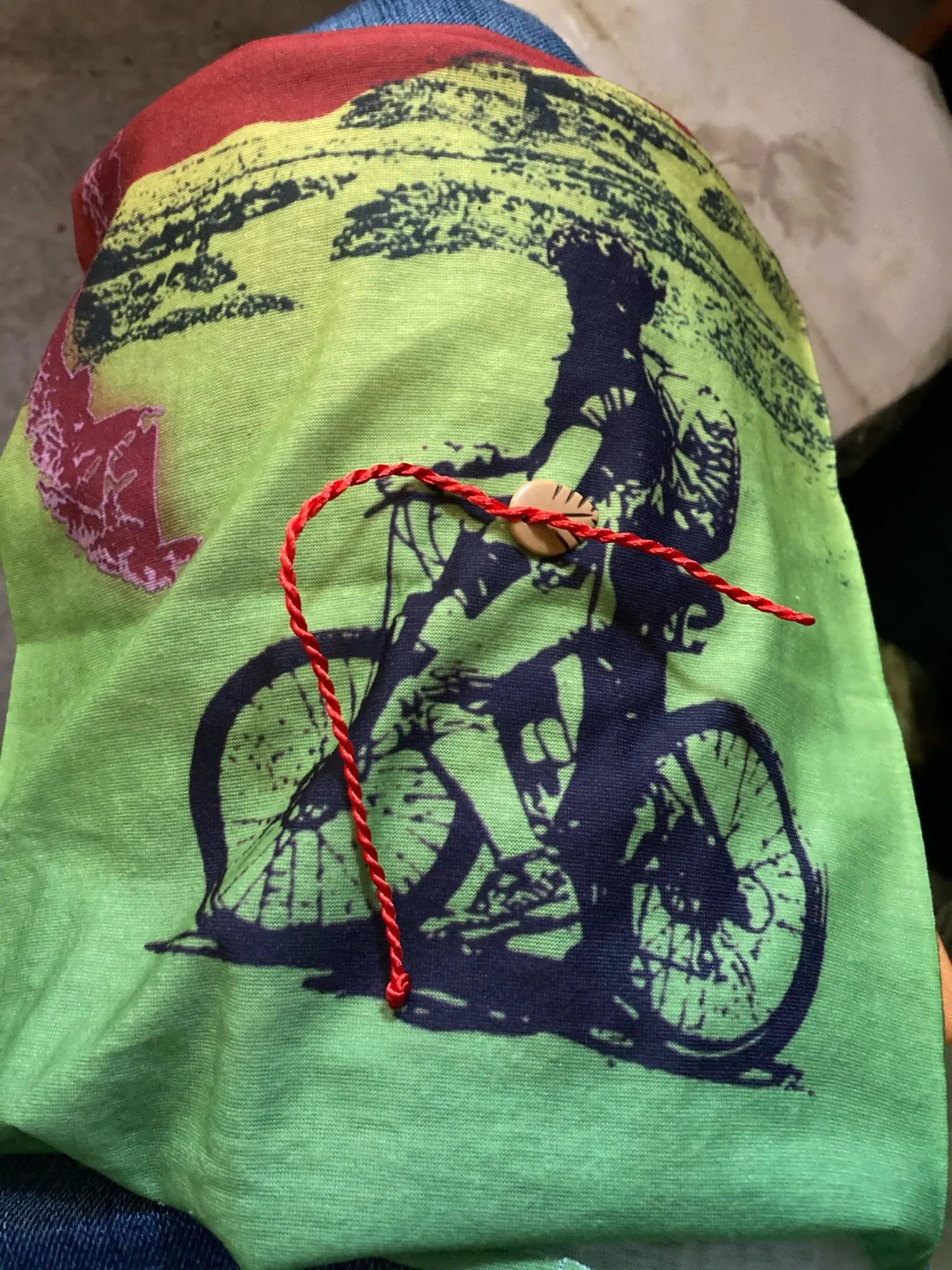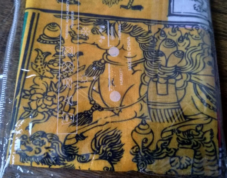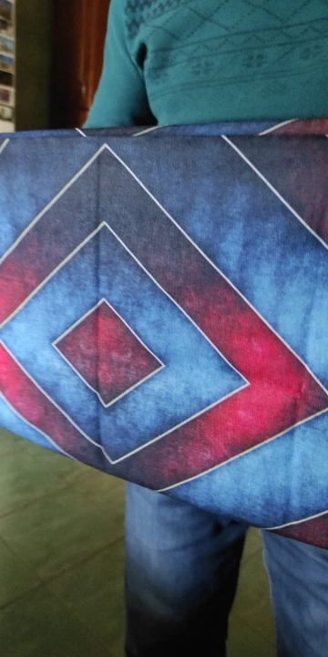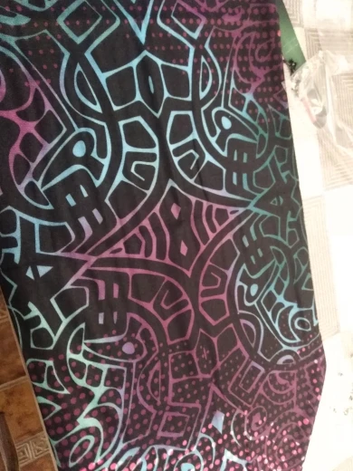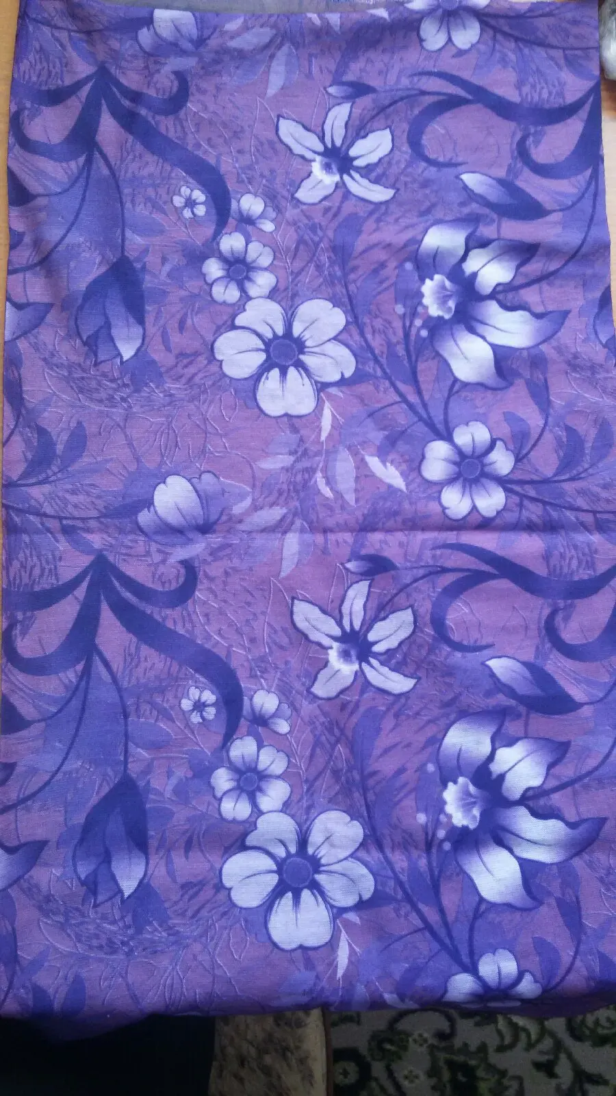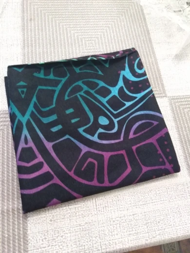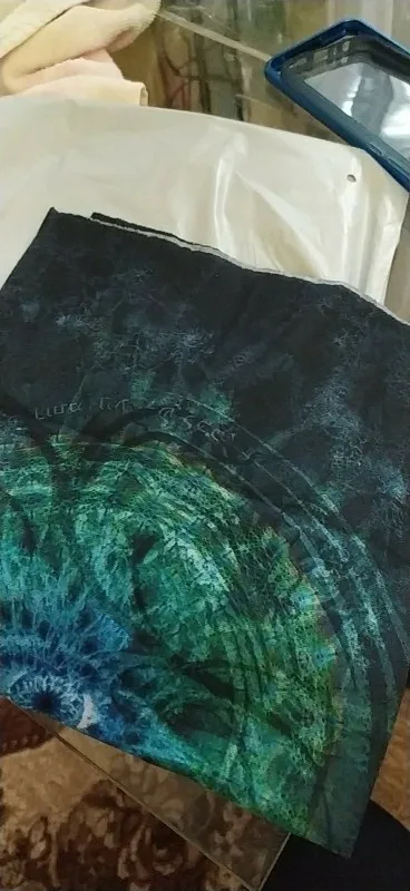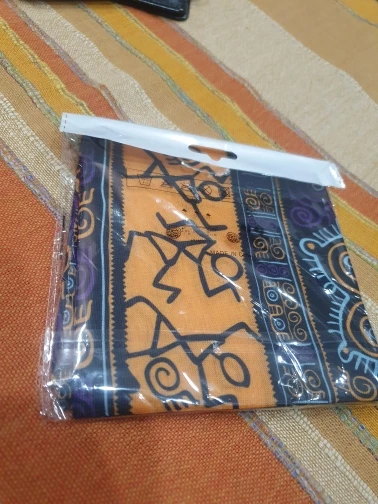 Заказ совпал по времени с другим (доставка plus), был объединён и доставлен за полторы недели курьерской доставкой в одном общем пакете. Рисунок яркий, очень красивый. Края не обработаны, подкладки нет (за эту цену ожидаемо).