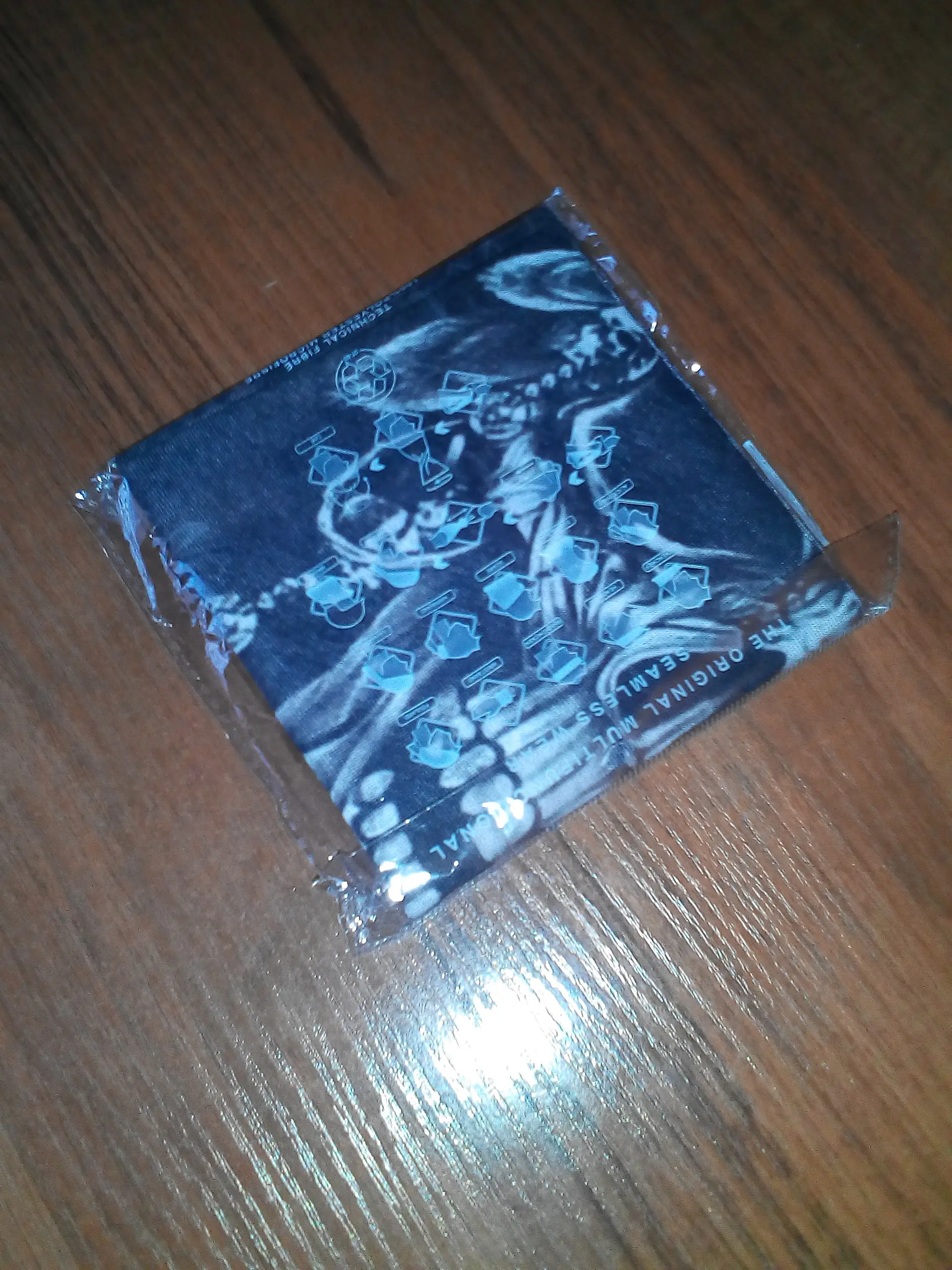 Приятный баф, без запаха, принт только с лицевой стороны, края обрезаны, рисунок четкий. Доехал за 10 дней