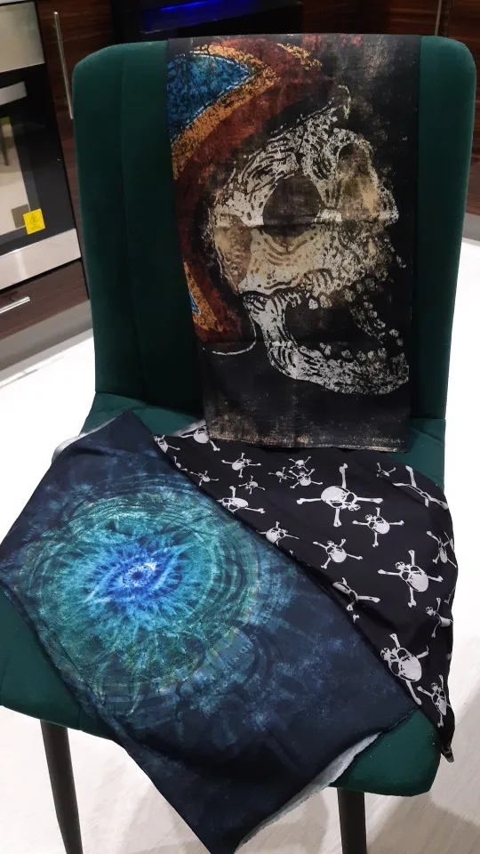 доставка до москвы - 11 дней!!!! платок синтетический, но приятный на ощупь и во время ношения, ткань хорошо растягивается, принты на обоих платках такие же, как на фотографиях продавца. если меня будут спрашивать про интересные маски, то обязательно вас порекомендую!
