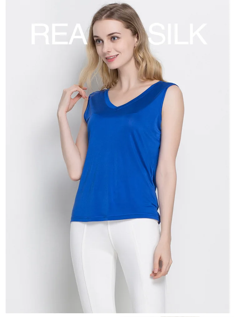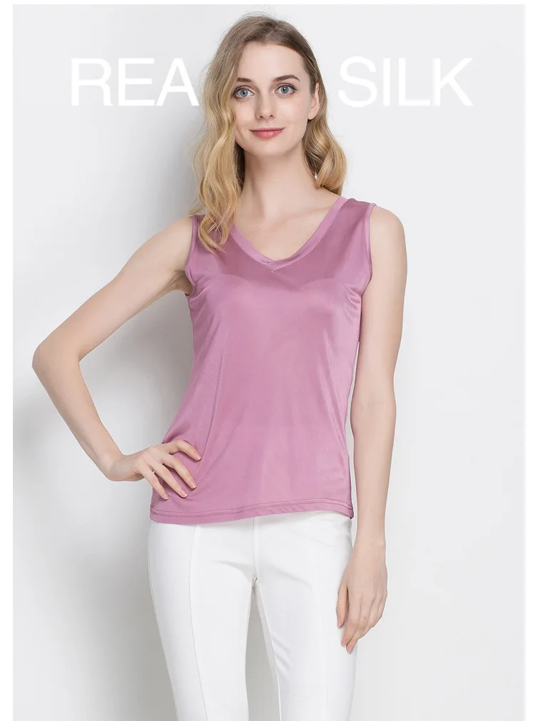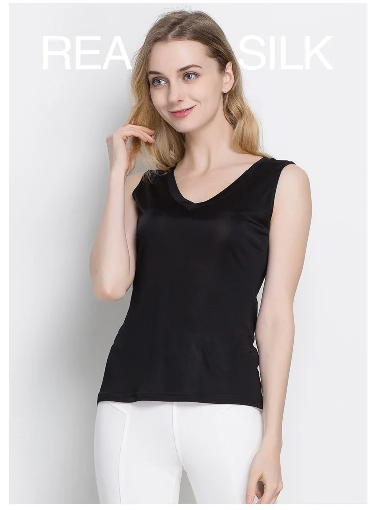 Майка женская из чистого шелка, повседневная, без рукавов, 100%