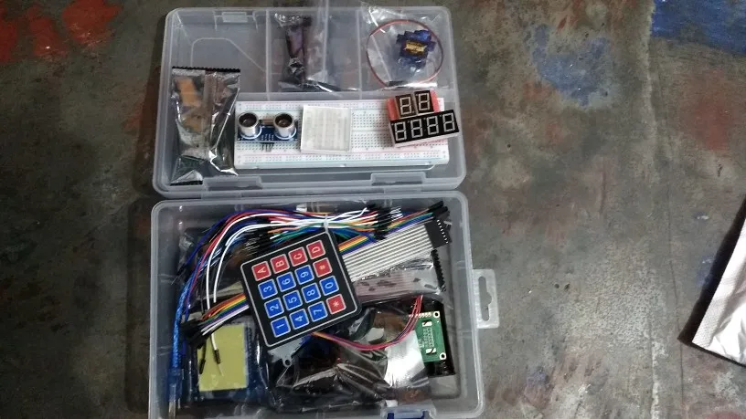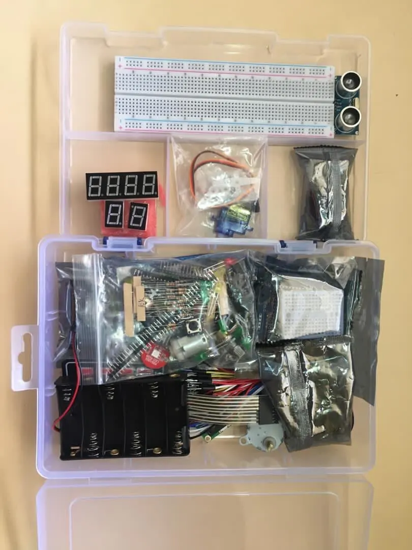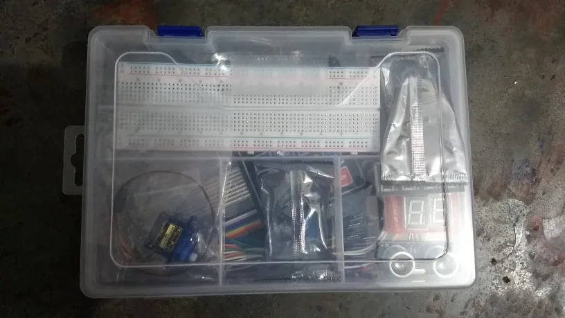Коробка и электронные компоненты прибыли в очень хорошем состоянии в заявленные сроки. Хрупкие компоненты были упакованы в герметичные пакеты, которые гарантируют состояние продукции. Мои Первые наброски, сделанные с этим набором, не показали дефектов компонентов. Только пожалеете: некоторые дополнительные резисторы не будут делать сборки в серии или параллельно. Я рекомендую этот стартовый набор для начинающих на Arduino.