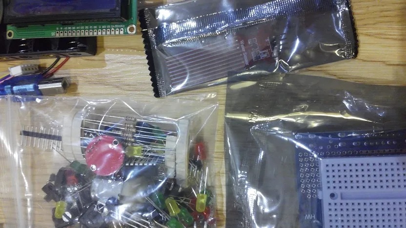 Приехал из Китая в СПб за 7(!!!) дней. В праздники (!!!). Всё целое, в пластиковом кейсе, внутри по пакетикам упаковано. Платка проверена, работает. Респект. Думаю, что для старта - отличный наборчик.