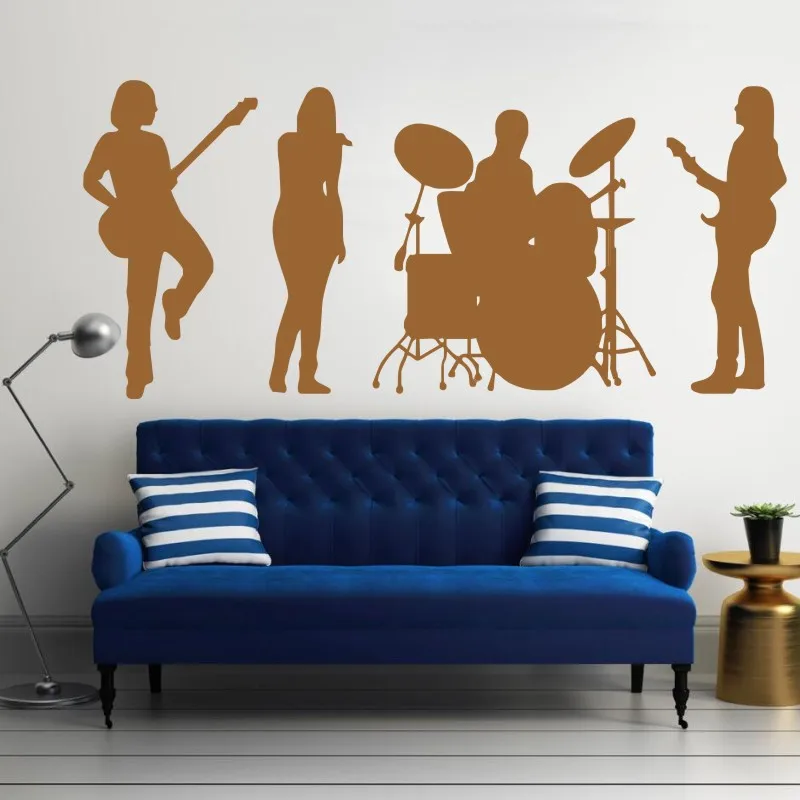 Muscis группа с барабаном силуэт художественный дизайн Настенная роспись Джаз рок поп музыка серия виниловая настенная роспись домашний модный Декор