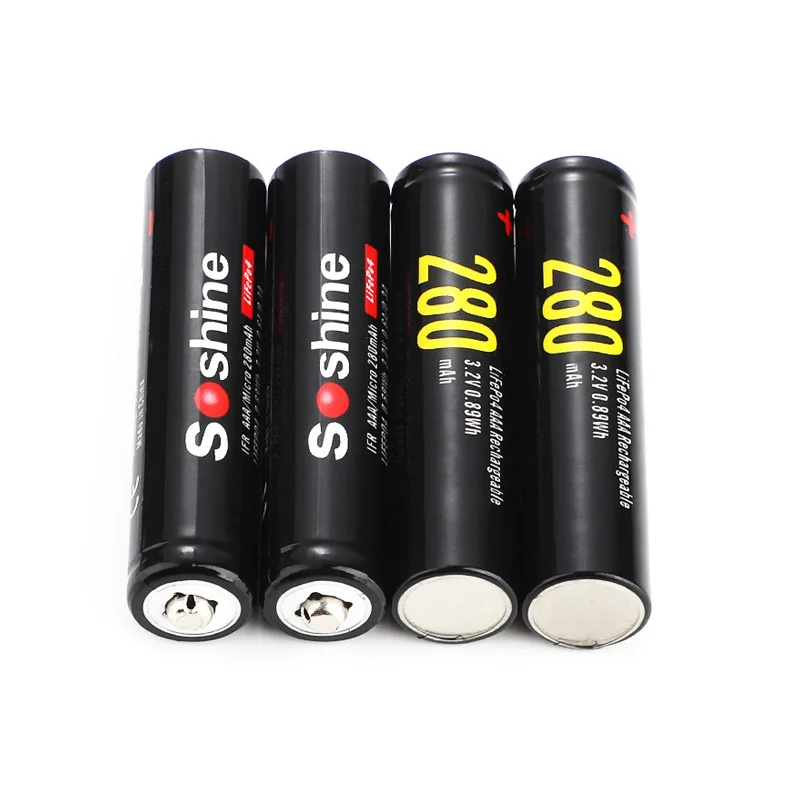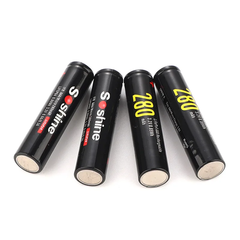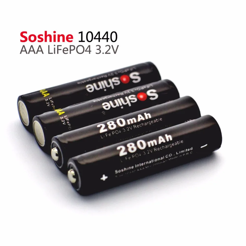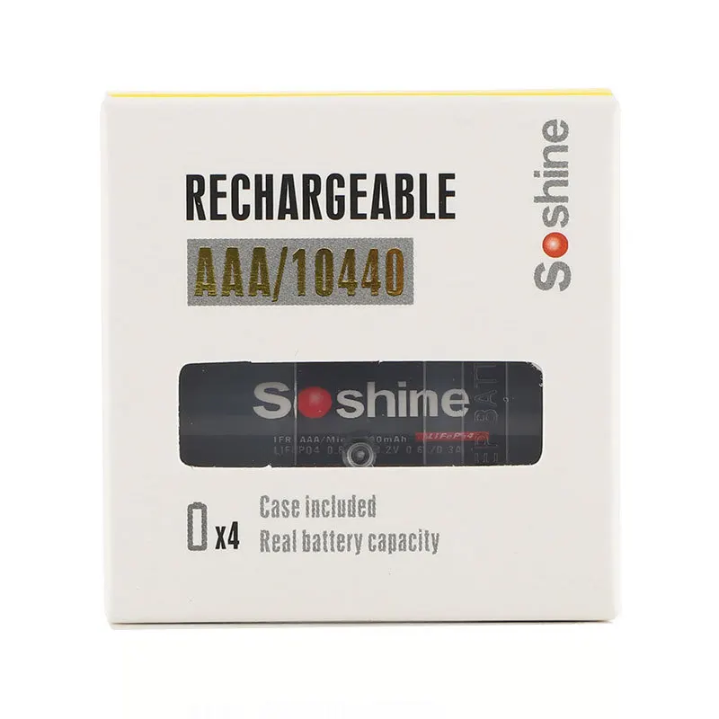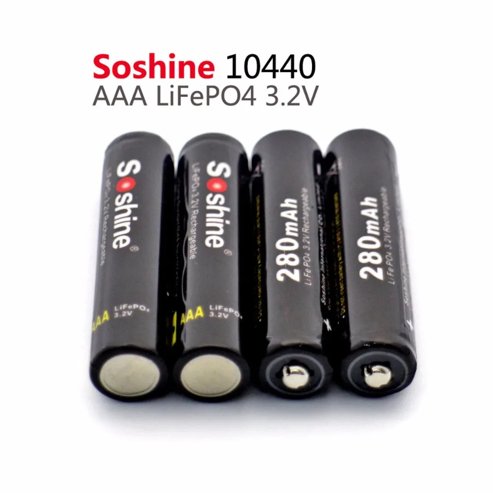 4 шт.упак. Soshine безопасная перевозка LiFePO4 10440 3,2 V 280mAh перезаряжаемая батарея с батарейным отсеком
