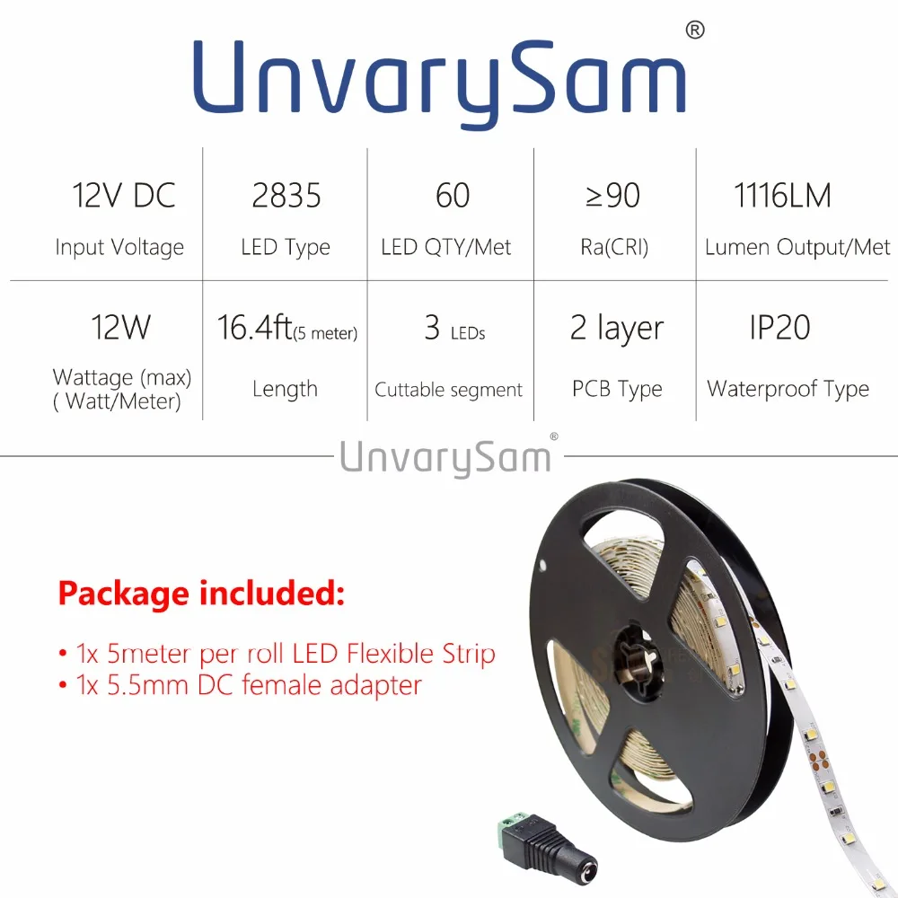 Светодиодная лента SMD2835 с высокой CRI 90 +, белая Гибкая лампа-полоска для подсветки, не водонепроницаемая, 12 В постоянного тока, 300 лмм, s, 5 м, 8 мм
