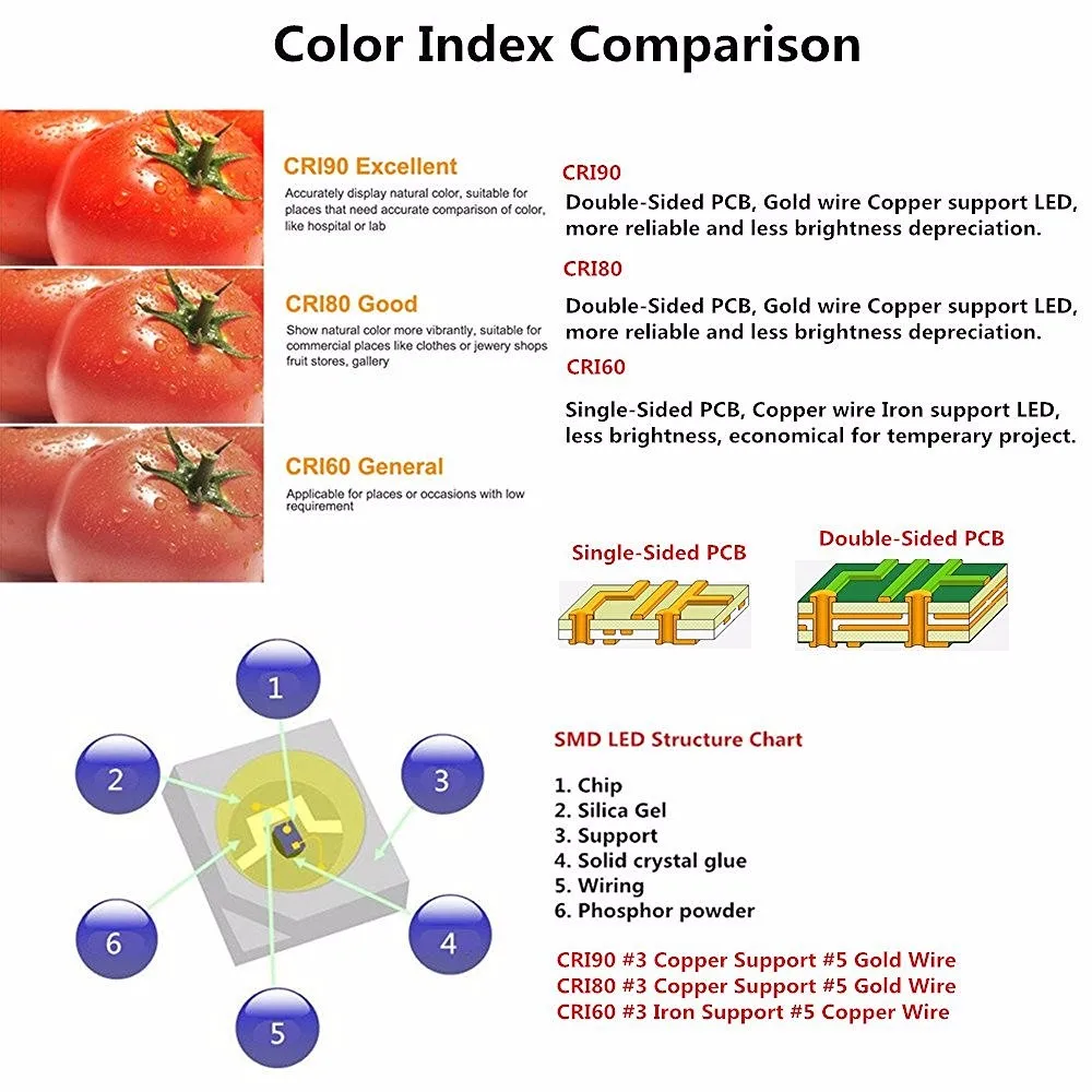 Судя по описанию должны использоваться светодиоды мощностью 0,2 Вт, по факту продавец прислал ленту со светодиодами 0,09Вт. Написал об этом Продавцу. Продавец пытался убедить, что это не так, что светодиоды правильные и применён специальный режим для экономии электроэнергии, и это не влияет на яркость!!! Но законы физики то никто не отменял... Открыл спор и вернул 2/3 стоимости.