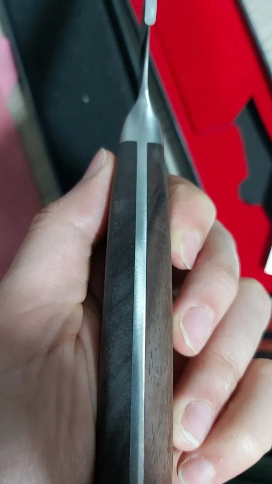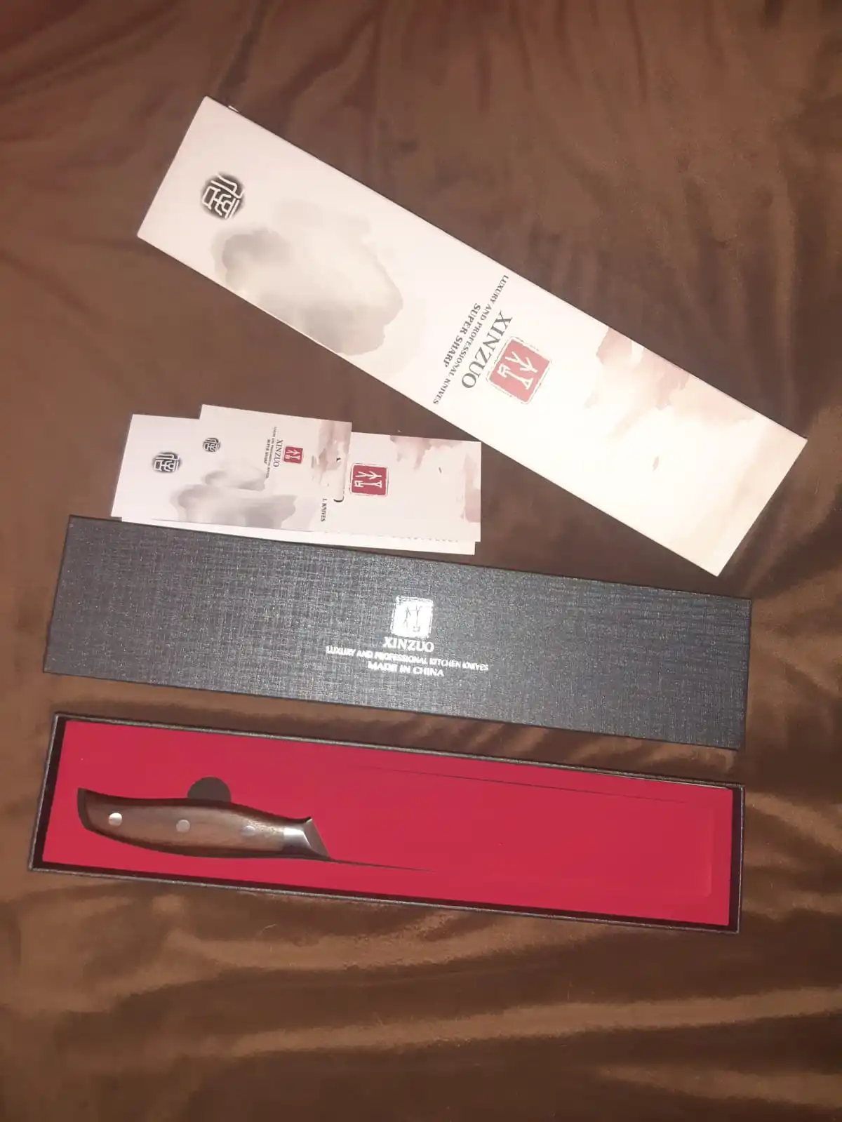 Упаковка отличная, Нож очень острый, но для меня это легкий вес. Профессиональный нож должен быть немного более тяжелым. Но никогда не меньше, чем будет использоваться.