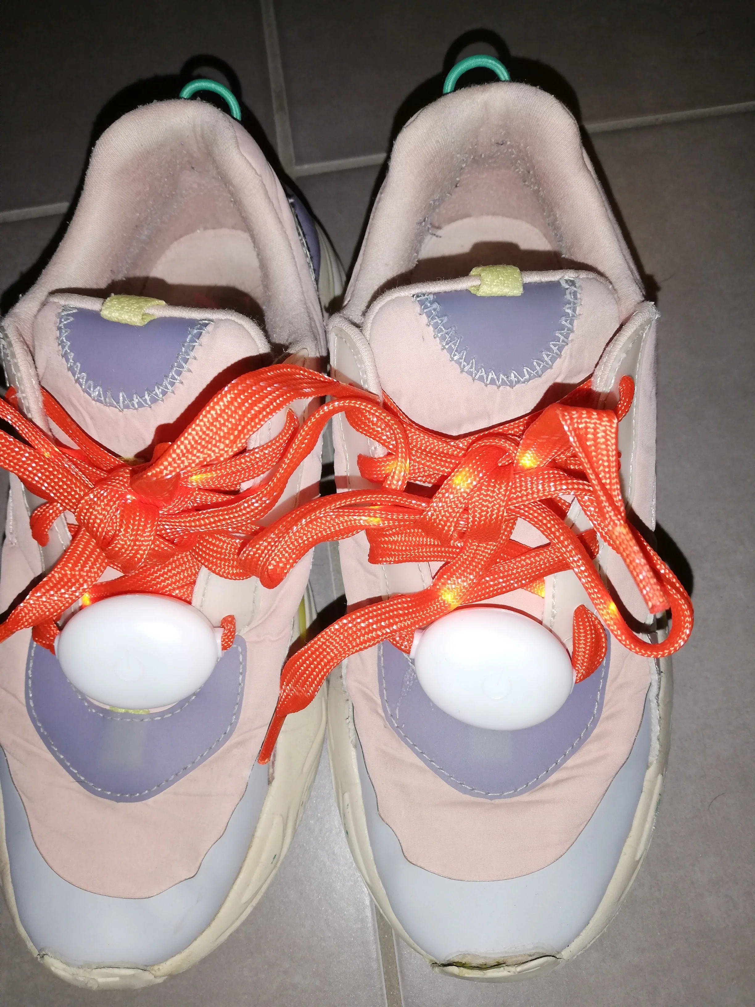 Je pensais que les lacets seraient rose fushia comme sur la photo, ils sont rose "barbie"! Par contre super l'effet lumineux!