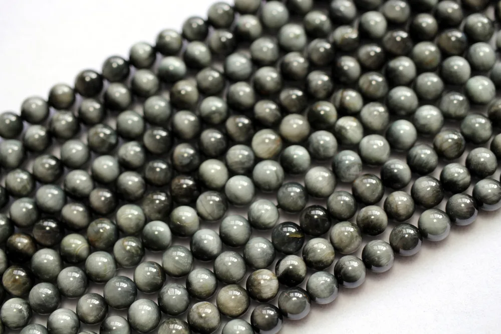 Оптовая продажа 7,5-8 мм натуральные бразильские серые бусины кошачий глаз гладкие круглые бусины для самостоятельного изготовления ювелирных изделий дизайн