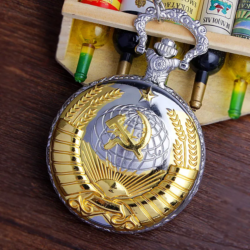 Карманные часы CCCP в стиле ретро, золотистые, серебристые, с цепочкой на цепочке, мужские кварцевые карманные часы в стиле серп-молота советского стиля, женские модные часы с подвеской
