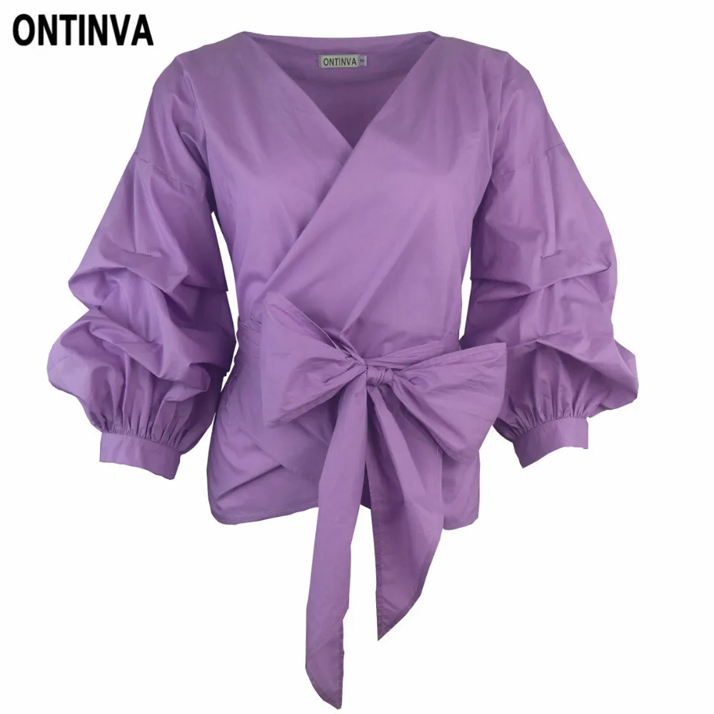 Женская блузка с поясом, элегантная белая клетчатая блузка с пышными рукавами и V-образным вырезом, деловая одежда для офиса, лето 2022