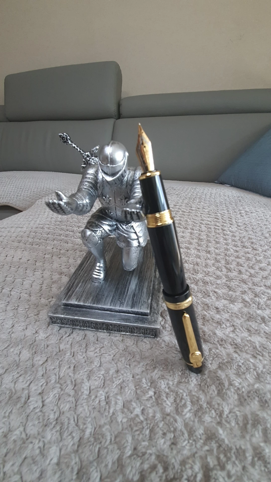 Отличное перо. Оказалась несколько крупней, чем я ожидал. но хороша. Нравится когда колпачок на резьбе.