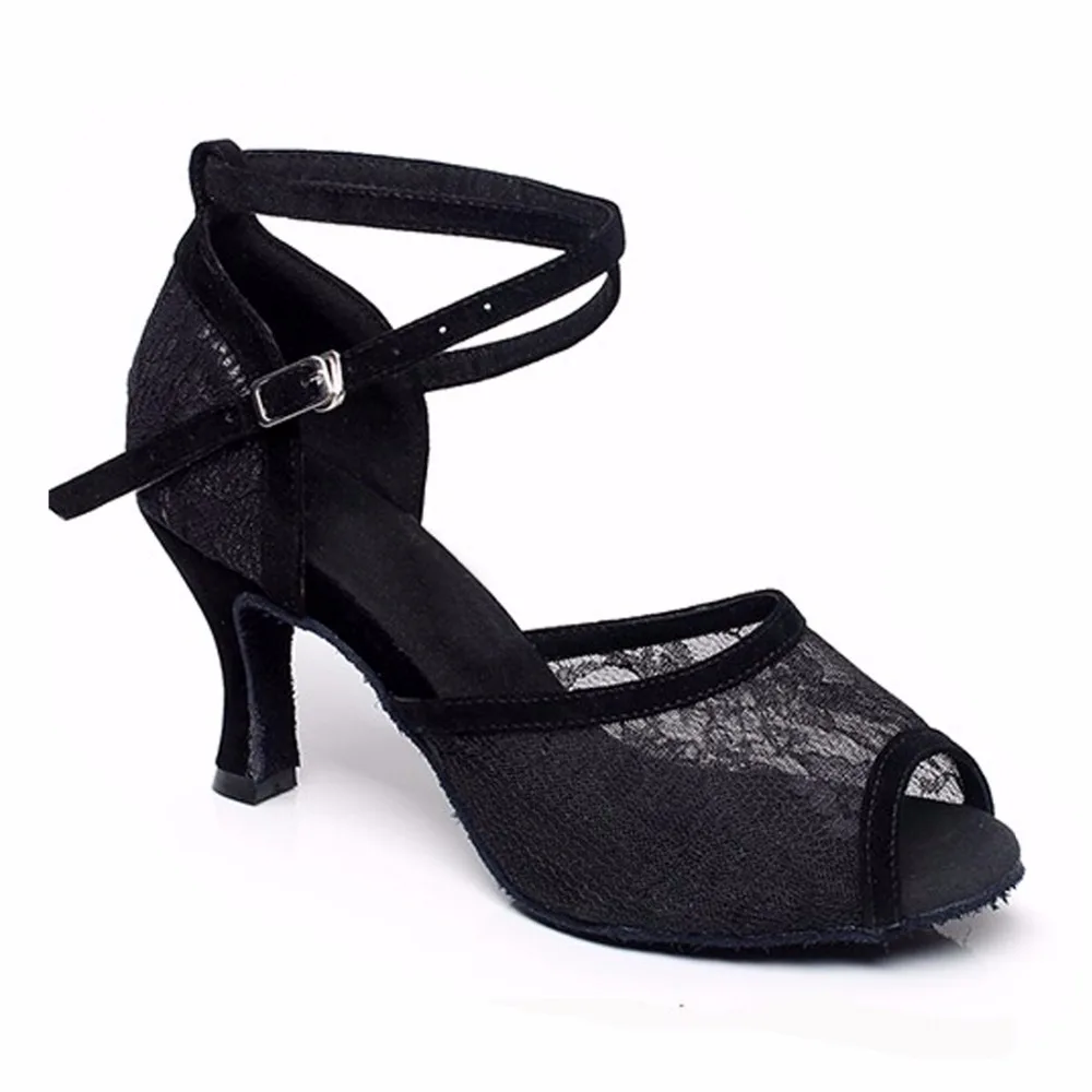 Женские бальные туфли для латиноамериканских танцев, черные сетчаты...