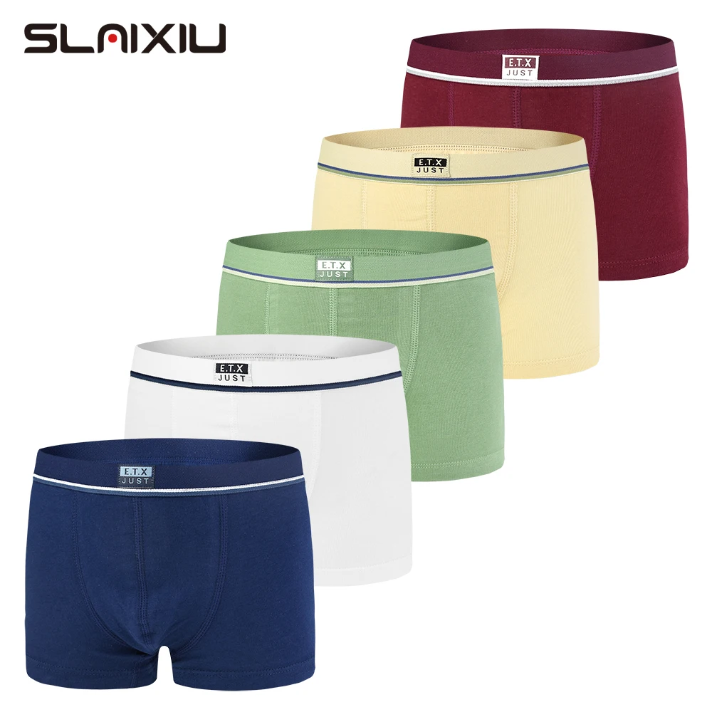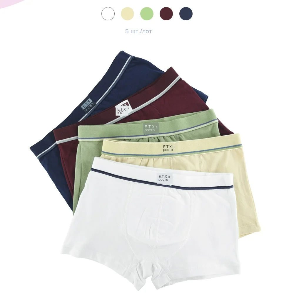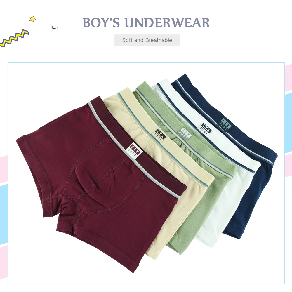 5 шт.лот, мягкое детское нижнее белье из органического хлопка для мальчиков, однотонные шорты Детские Боксеры для От 2 до 16 лет, детское нижнее белье для подростков